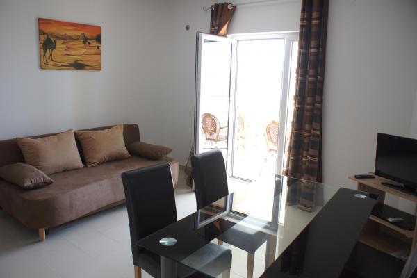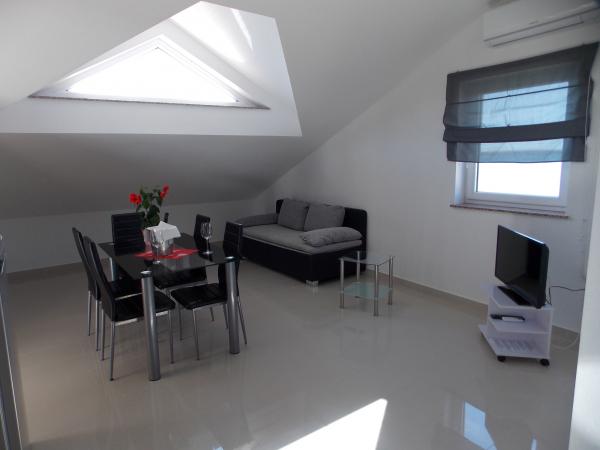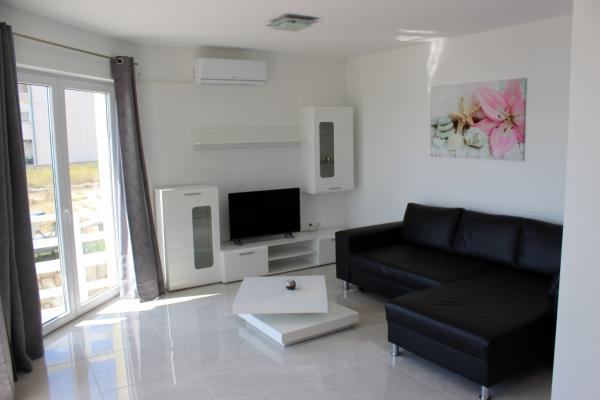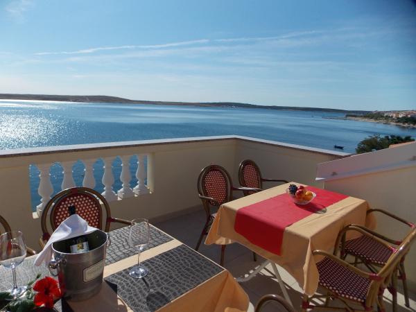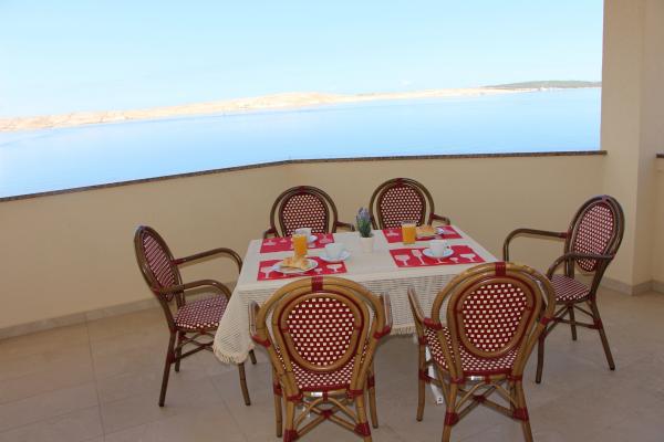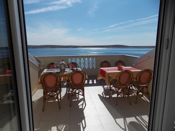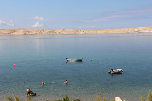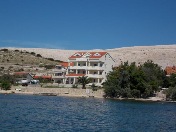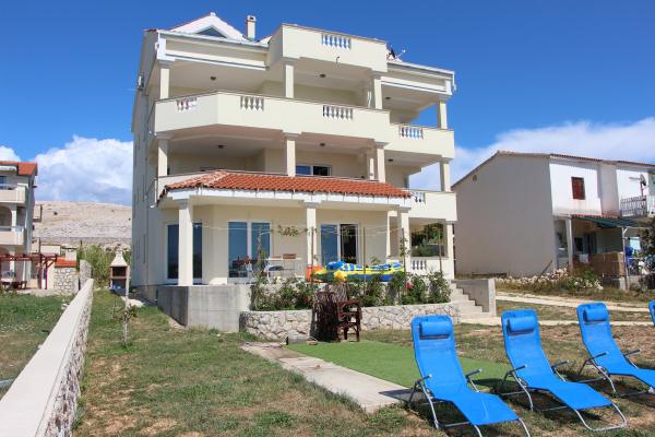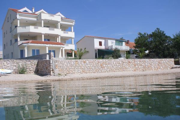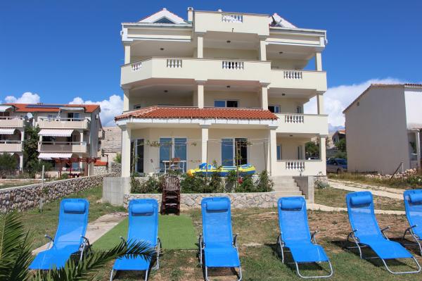 De volledig en modern ingerichte appartementen bevinden zich in een nieuw gebouwd huis op slechts 20 meter van de zee. Alle appartementen beschikken over ruime terrassen met een prachtig uitzicht op de baai van Pag en een onvergetelijke zonsondergang. Het huis heeft een grote tuin en een eigen parkeerplaats. Het privézandstrand loopt door tot aan het huis en vormt er een integraal onderdeel van. De accommodatie is daarom ideaal voor gezinnen met kinderen, die hier van harte welkom zijn. Het stadje Novalja ligt op 5 kilometer van het huis en biedt alle voorzieningen (cultureel, sportief).