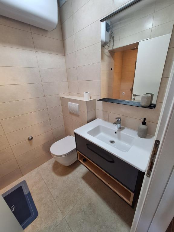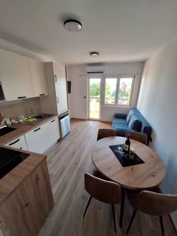 Gezinswoning met onlangs gerenoveerd appartement (A2+1). Terras met zeezicht. Ruime tuin, parkeergelegenheid, buitendouche. Rustige locatie, vlakbij het zandstrand en de kinderspeelplaats. Vlakbij een nieuw mountainbike- en joggingpad door de olijfgaarden. Slaapkamer met tweepersoonsbed en open woonkamer en extra bed. TV in slaapkamer en woonkamer. Vaatwasser en wasmachine. Badkamer met inloopdouche. Alles NIEUW!