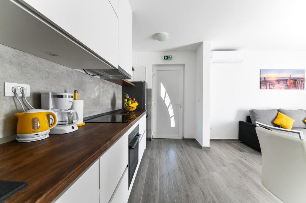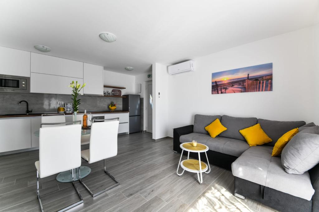 Appartement met één slaapkamer (2+2), gebouwd in 2020. Modern, volledig uitgerust appartement in een rustig deel van de stad, waar u heerlijk tot rust kunt komen. Het ligt op 300 m van de zee, 700 m van restaurants en cafés en 800 m van winkels. Er is een barbecue, terras en balkon met zeezicht. Beveiligde parkeergelegenheid. Er zijn een kinderbedje en kinderstoel voor kinderen beschikbaar. Gemakkelijk bereikbaar met de auto vanuit Nationaal Park Paklenica, de eilanden Pag, Nin, Vrsi en Zadar, en op 24 km van de luchthaven van Zemunik.
