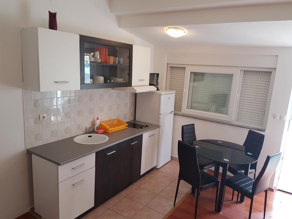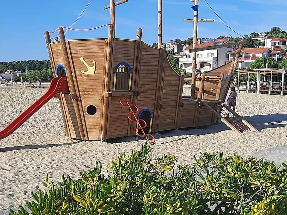 Volledig ingerichte appartementen voor twee volwassenen en twee kinderen. De appartementen beschikken over een slaapkamer, badkamer, woonkamer, keuken en eethoek. We hebben een overdekt terras met een barbecue en ligstoelen. Elk appartement heeft een eigen terras. Het huis met de appartementen ligt op de eerste rij van de zee (10 m), aan het zandstrand met voorzieningen voor kinderen (schommels, glijbaan, piratenschip, waterfietsen, volleybal, waterpolo, voetbal...). Kies de perfecte plek om te ontspannen voor uzelf en uw kinderen. Welkom!