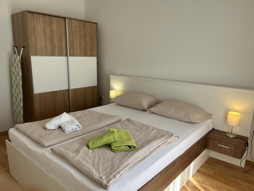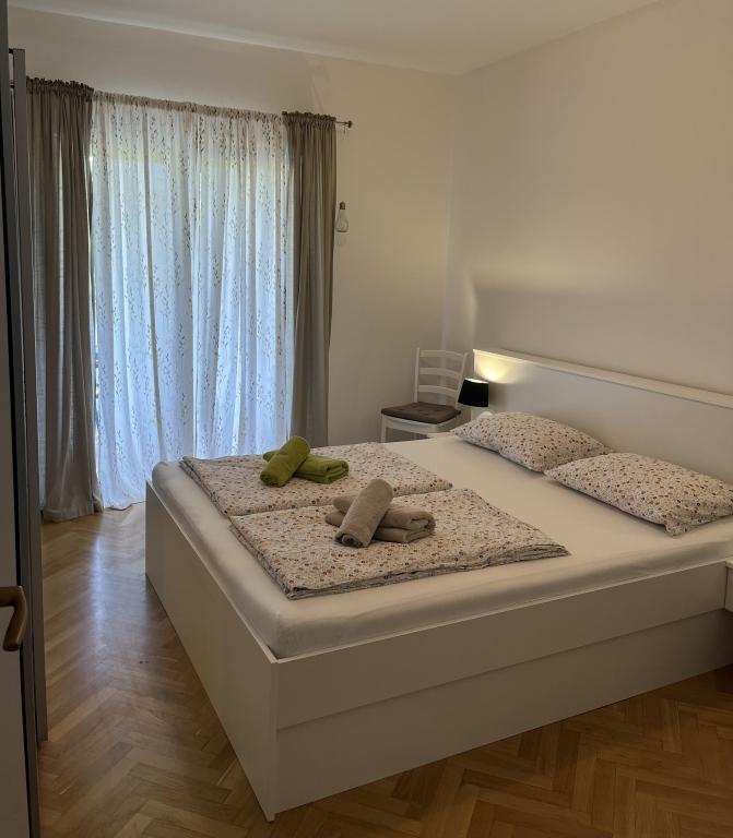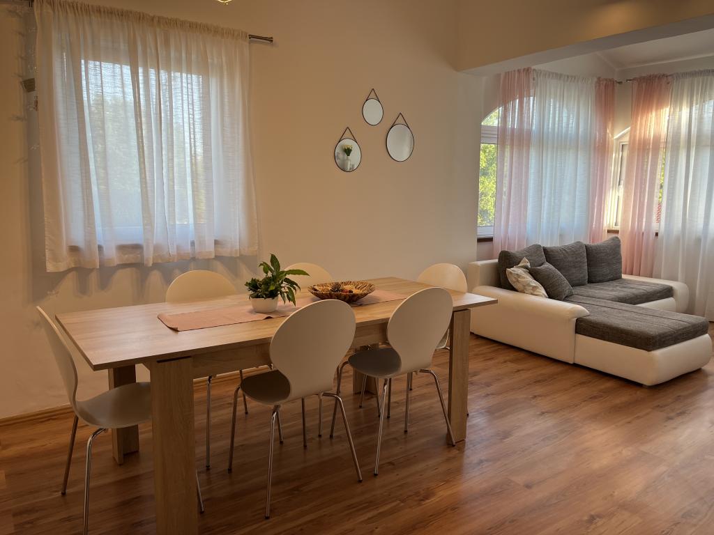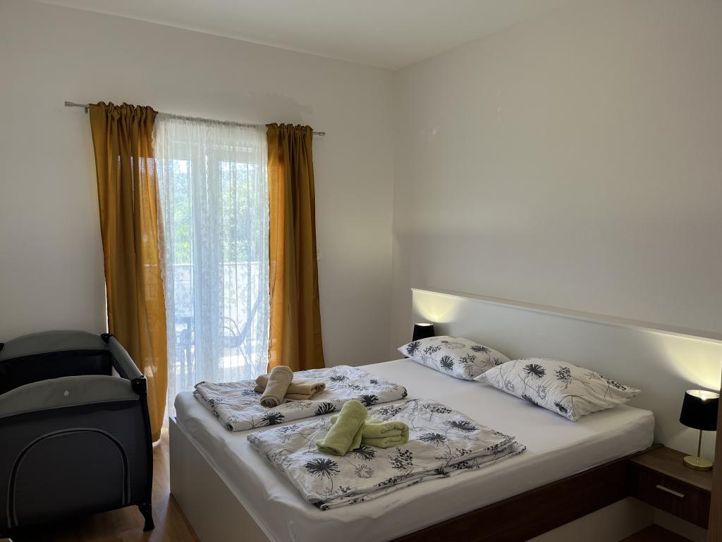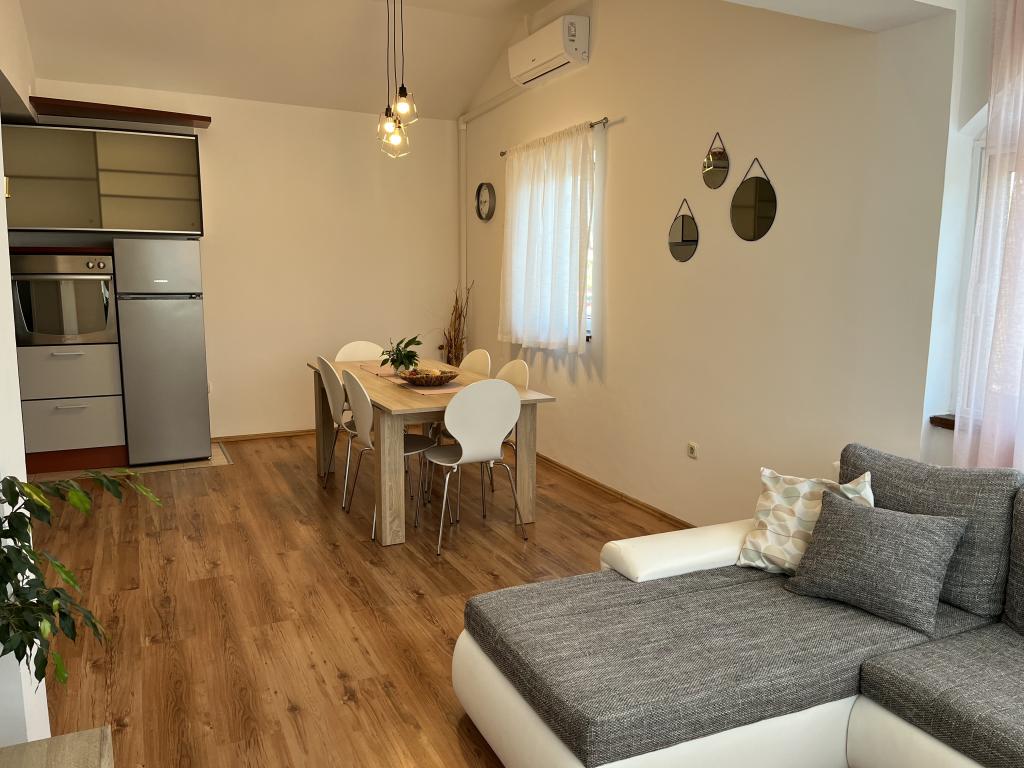 Modern ingerichte appartementen, gelegen op de eerste rij aan zee. De appartementen bevinden zich op de eerste en tweede verdieping. Ze hebben slaapkamers met een tweepersoonsbed. Ze bestaan uit een volledig uitgeruste keuken (oven, fornuis, waterkoker, koelkast, broodrooster, vaatwasser), eetkamer en woonkamer, en een badkamer met douche. Tijdens uw verblijf kunt u op het balkon genieten van het prachtige uitzicht op zee terwijl u 's ochtends koffie drinkt. U kunt gebruikmaken van een gemeenschappelijke tuin, een speeltuin en een barbecue. Er is parkeergelegenheid naast het gebouw. Het gebouw ligt op 2 minuten lopen van het strand en op 2 minuten lopen van de eerste winkel en restaurant. Het centrum ligt op 15 minuten rijden met de auto. Rab is echt een vrolijk eiland met veel kleine, pittoreske baaien, bijna 125 jaar geleden tot op de dag van vandaag door toeristen van over de hele wereld erkend vanwege de kristalheldere, warme en ondiepe zee. Ideaal voor een vakantie voor het hele gezin.