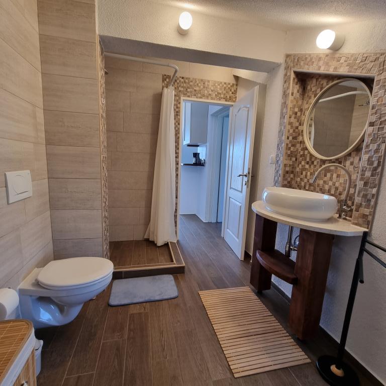 Onze appartementen bieden comfortabele accommodatie met uitgeruste keukens, airconditioning, televisie en gratis WiFi. Gasten kunnen genieten van een ruime tuin, een barbecue om buiten maaltijden te bereiden en een grotere parkeerplaats. Huisdieren zijn niet toegestaan. Mogelijkheid om een babybedje te gebruiken. Wassen - extra kosten.