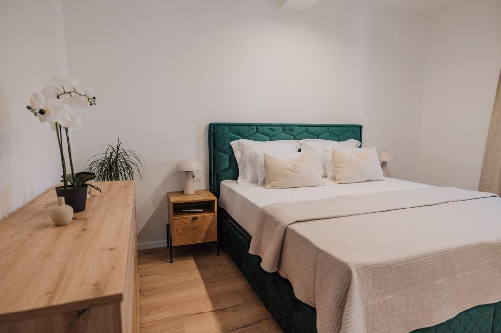 Een onlangs gerenoveerd en modern ingericht appartement is te huur in Lumbarda op het eiland Korčula. Het appartement is gelegen in de authentieke ambiance van een ruime olijfgaard en garandeert gasten absolute privacy en rust. Het appartement heeft een woonoppervlakte van 75 vierkante meter en beschikt over twee slaapkamers en twee badkamers. Bijzondere aandacht is besteed aan de buitenruimte, met een groot terras van 35 vierkante meter en een tuin van 100 vierkante meter, ideaal om in alle rust te ontspannen. Het interieur is volledig uitgerust voor een comfortabel verblijf voor vier personen, inclusief een vaatwasser in de keuken, een wasmachine in de badkamer, MaxTV en snel 5G-internet. Voor gezinnen met kleine kinderen is op aanvraag een kinderbedje beschikbaar. De locatie biedt een perfecte combinatie van privacy en nabijheid van alle voorzieningen; de eerste zwembaai ligt op slechts 200 meter afstand, het stadscentrum op 800 meter en de beroemde grote zandstranden op ongeveer 2 kilometer afstand. Gasten kunnen gebruikmaken van een eigen parkeerplaats in het gebouw.