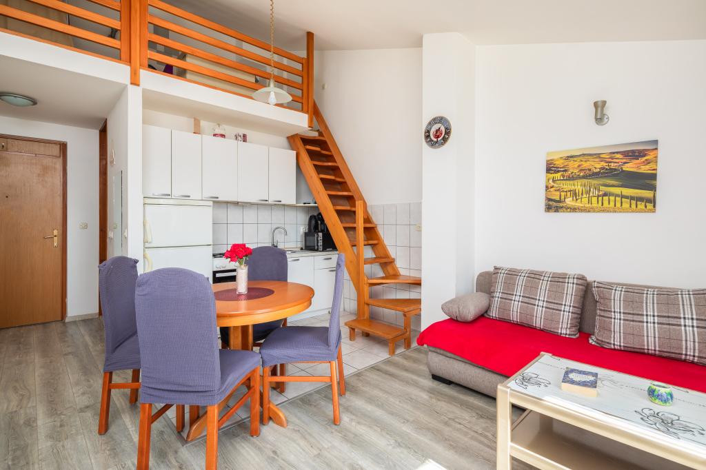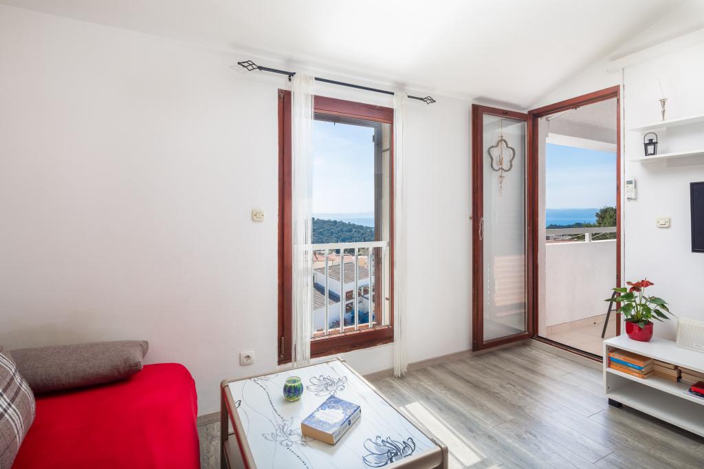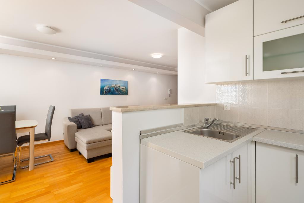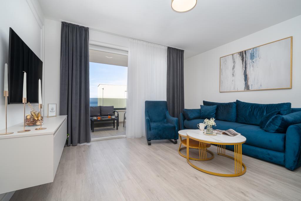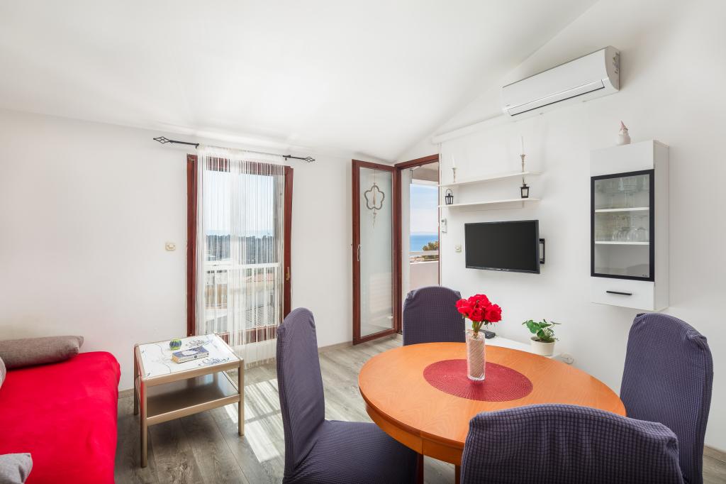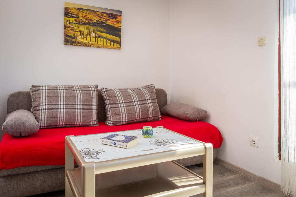 Dit appartement heeft 1 slaapkamer, een woonkamer met een slaapbank, een keuken en een balkon met uitzicht op zee. Er is een gratis parkeerplaats aan de voorkant van het gebouw.