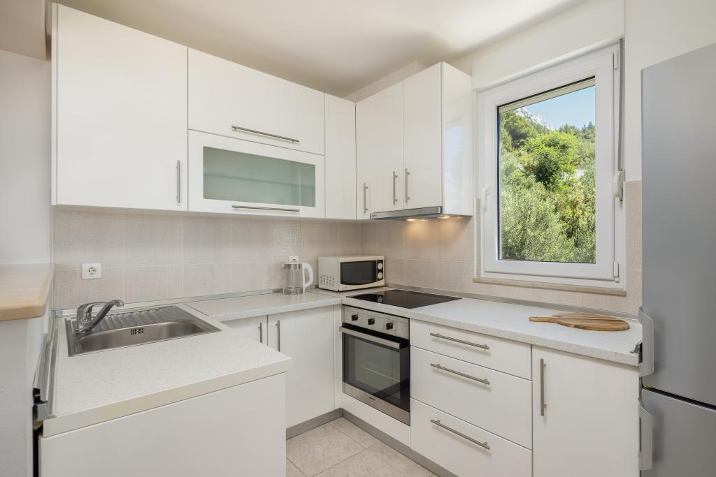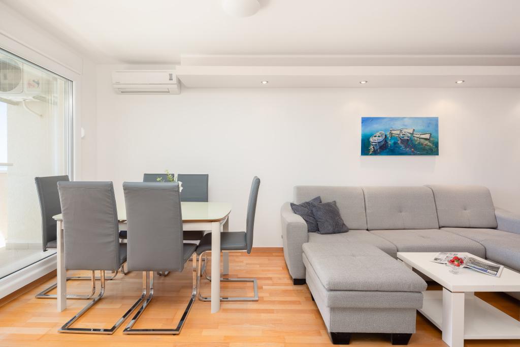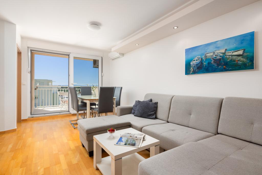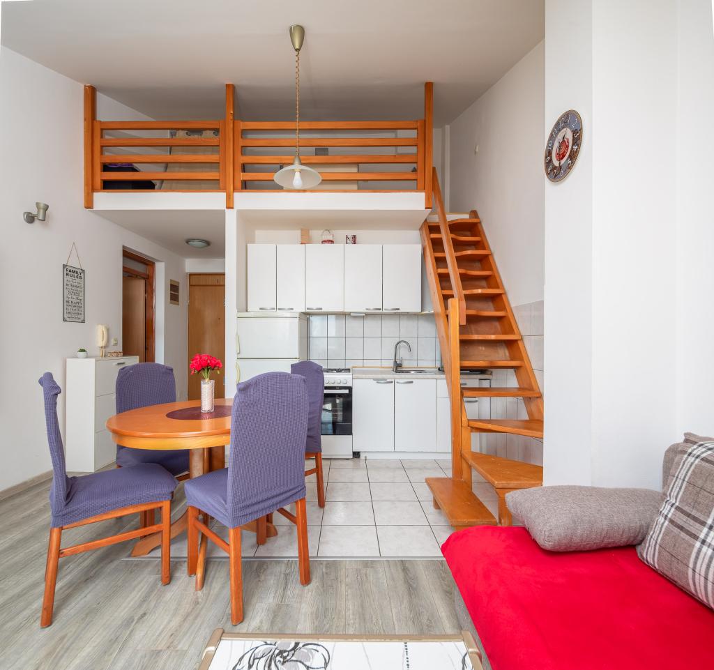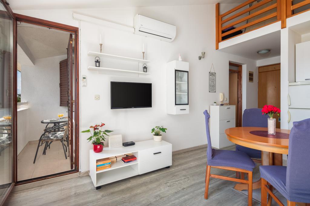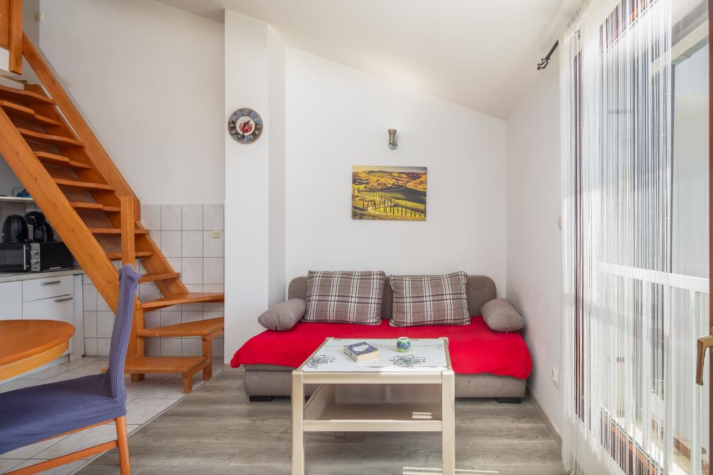 Dit appartement heeft 1 slaapkamer, een woonkamer met een slaapbank, een keuken en een balkon met uitzicht op zee. Er is een gratis parkeerplaats aan de voorkant van het gebouw.