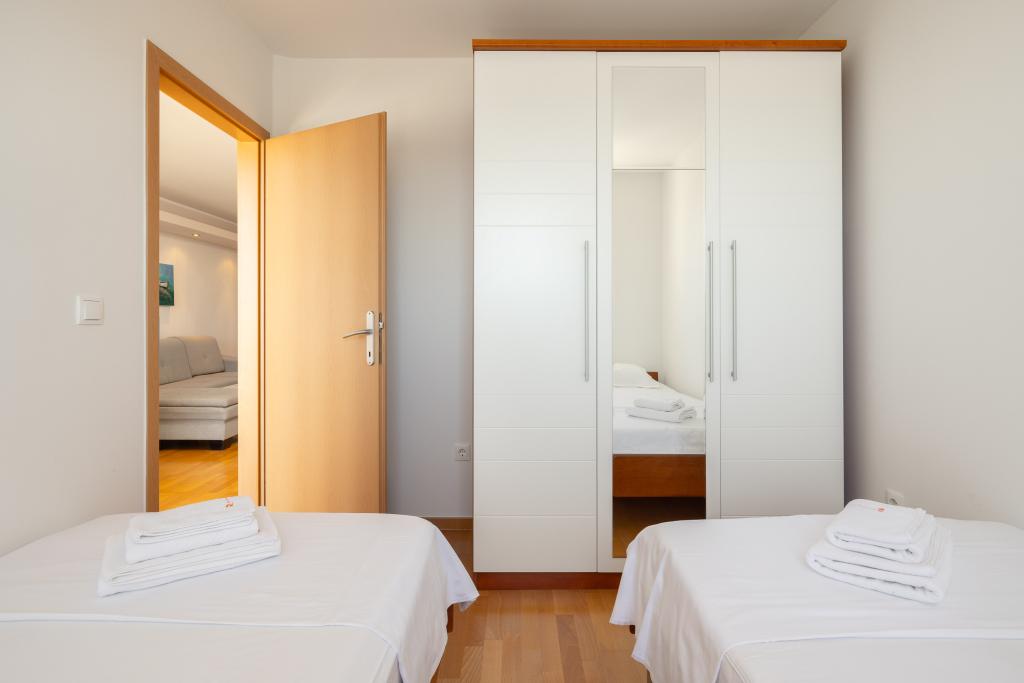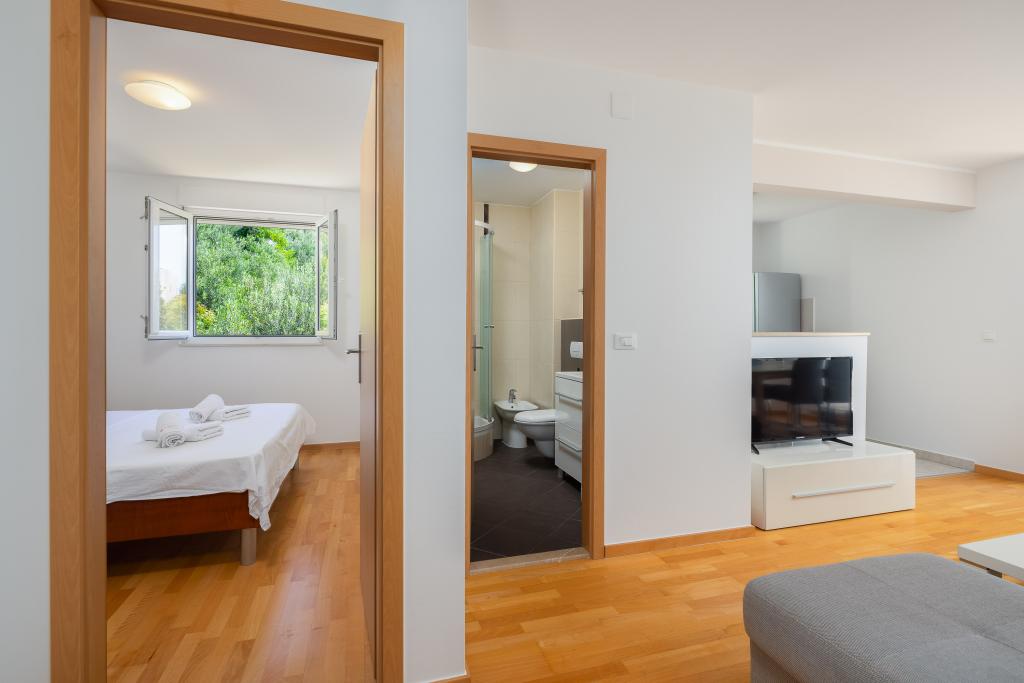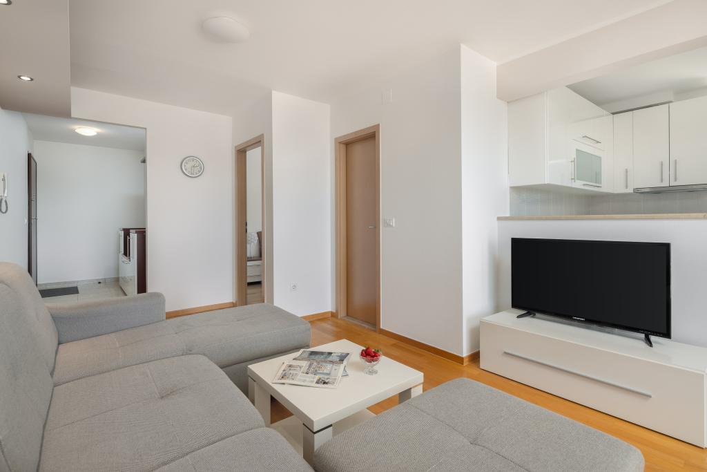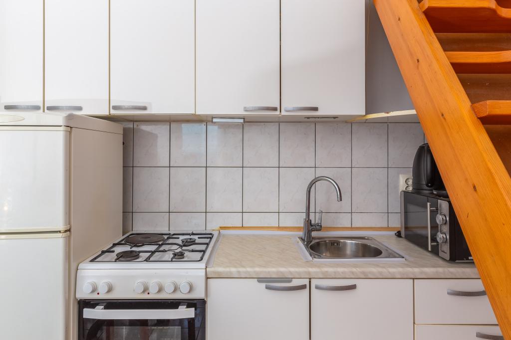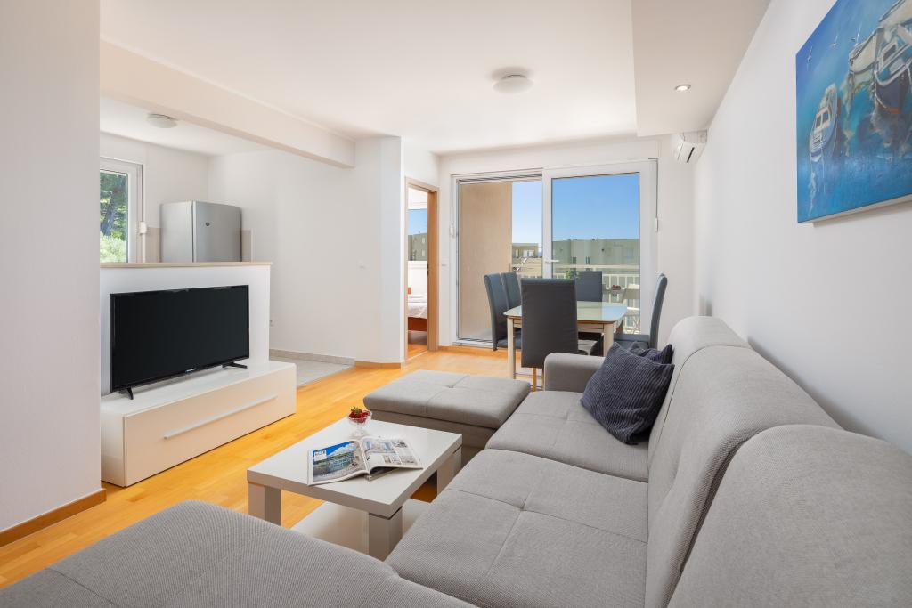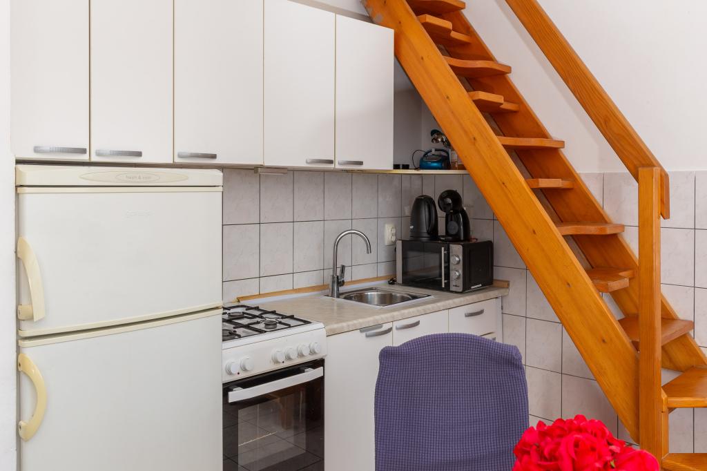 Dit appartement heeft 1 slaapkamer, een woonkamer met een slaapbank, een keuken en een balkon met uitzicht op zee. Er is een gratis parkeerplaats aan de voorkant van het gebouw.