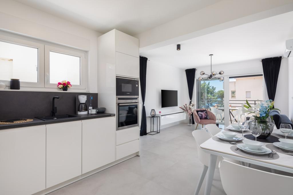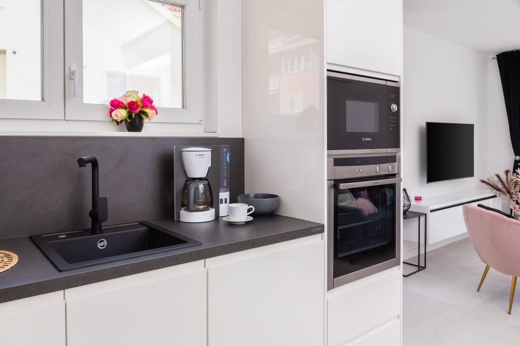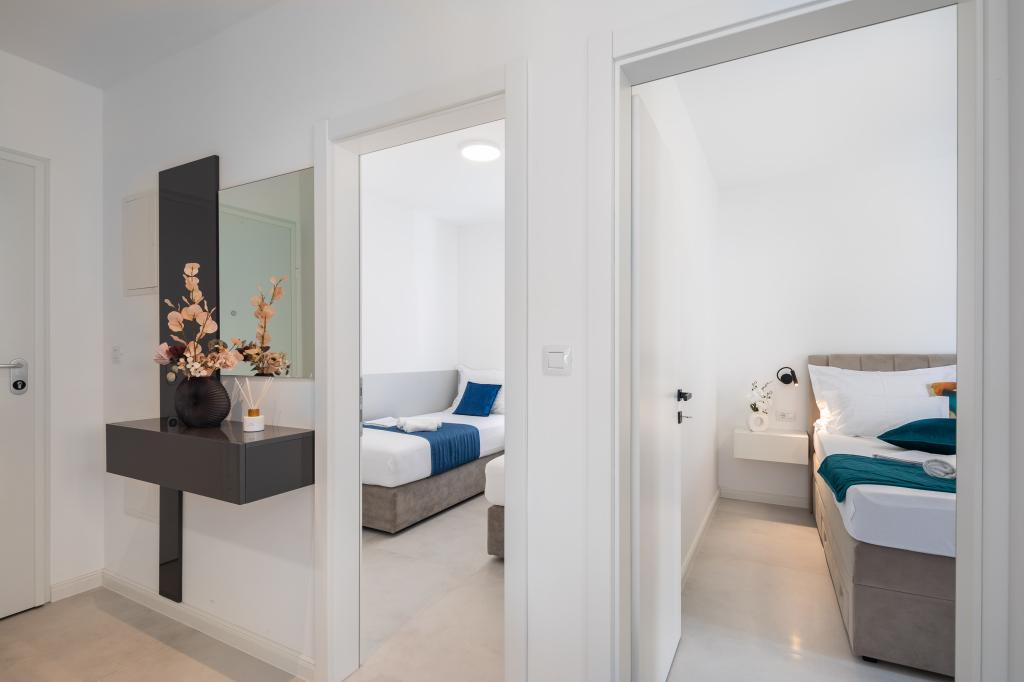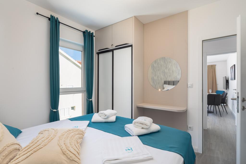 Appartement Edvina ligt op 500 meter van het strand. Het biedt gasten gemakkelijke toegang tot de prachtige Adriatische kust en biedt tegelijkertijd een comfortabele en moderne woonruimte. Het appartement heeft twee slaapkamers, elk zorgvuldig ontworpen om een rustig en comfortabel verblijf te garanderen. De slaapkamers zijn voorzien van comfortabele bedden. Het balkon biedt een prachtig uitzicht op de zee en de stad. De parkeerplaats bevindt zich naast het gebouw.