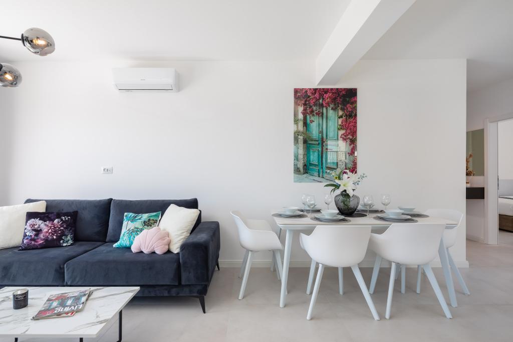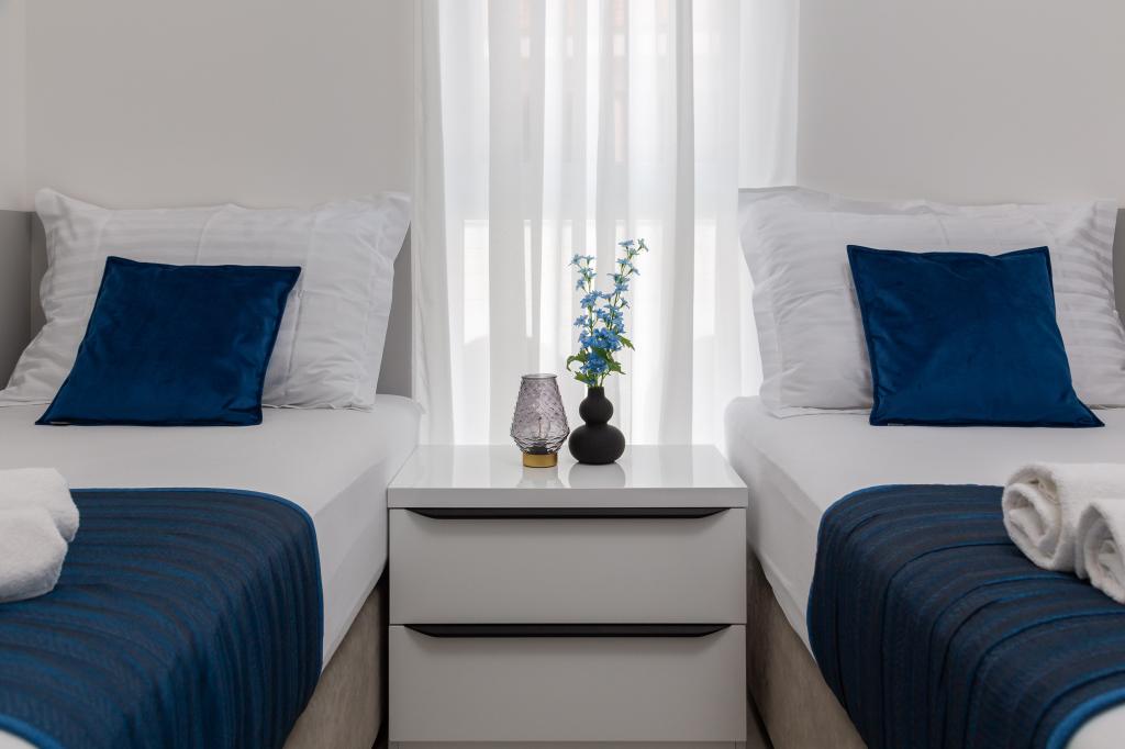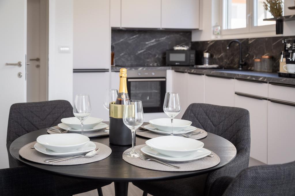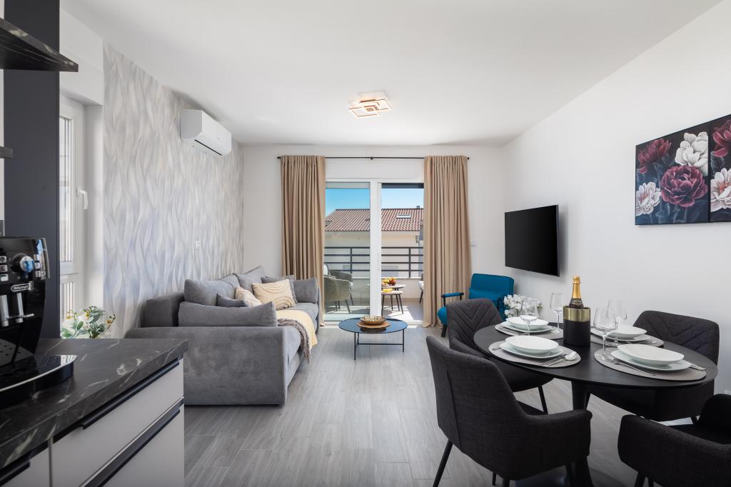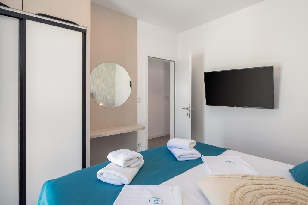 Appartement Edvina ligt op 500 meter van het strand. Het biedt gasten gemakkelijke toegang tot de prachtige Adriatische kust en biedt tegelijkertijd een comfortabele en moderne woonruimte. Het appartement heeft twee slaapkamers, elk zorgvuldig ontworpen om een rustig en comfortabel verblijf te garanderen. De slaapkamers zijn voorzien van comfortabele bedden. Het balkon biedt een prachtig uitzicht op de zee en de stad. De parkeerplaats bevindt zich naast het gebouw.