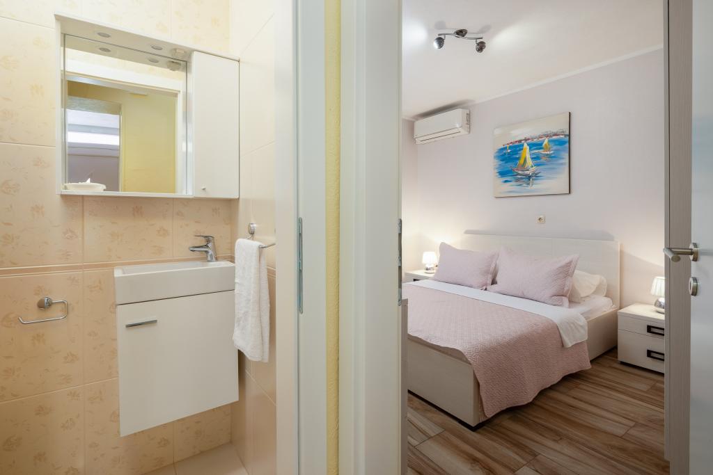 Welkom bij Perla Appartement. Slechts 200 meter van het strand van Makarska en 700 meter van het strand van Ratac. Dit appartement aan het strand biedt toegang tot een ruim terras en gasten kunnen in de hele accommodatie gebruikmaken van gratis WiFi. De accommodatie is rookvrij en beschikt over een fitnessruimte. Het appartement bestaat uit twee ruime slaapkamers, twee moderne badkamers, een volledig uitgeruste keuken, een eethoek en een woonkamer met een flatscreen-tv en streamingdiensten. Gasten kunnen genieten van het terras met prachtig uitzicht op de bergen. De unit is voorzien van airconditioning, een douche, een kledingkast, een eigen ingang en geluidsisolatie voor extra privacy. Voor gezinnen met kinderen is er een veiligheidshek voor baby's aanwezig, waardoor het verblijf comfortabel en veilig is. Populaire bezienswaardigheden in de buurt van het appartement zijn onder andere St. Peter, het centraal busstation van Makarska en de boulevard Riva van Makarska. De dichtstbijzijnde luchthaven is Brac Airport, op 33 km van de accommodatie.