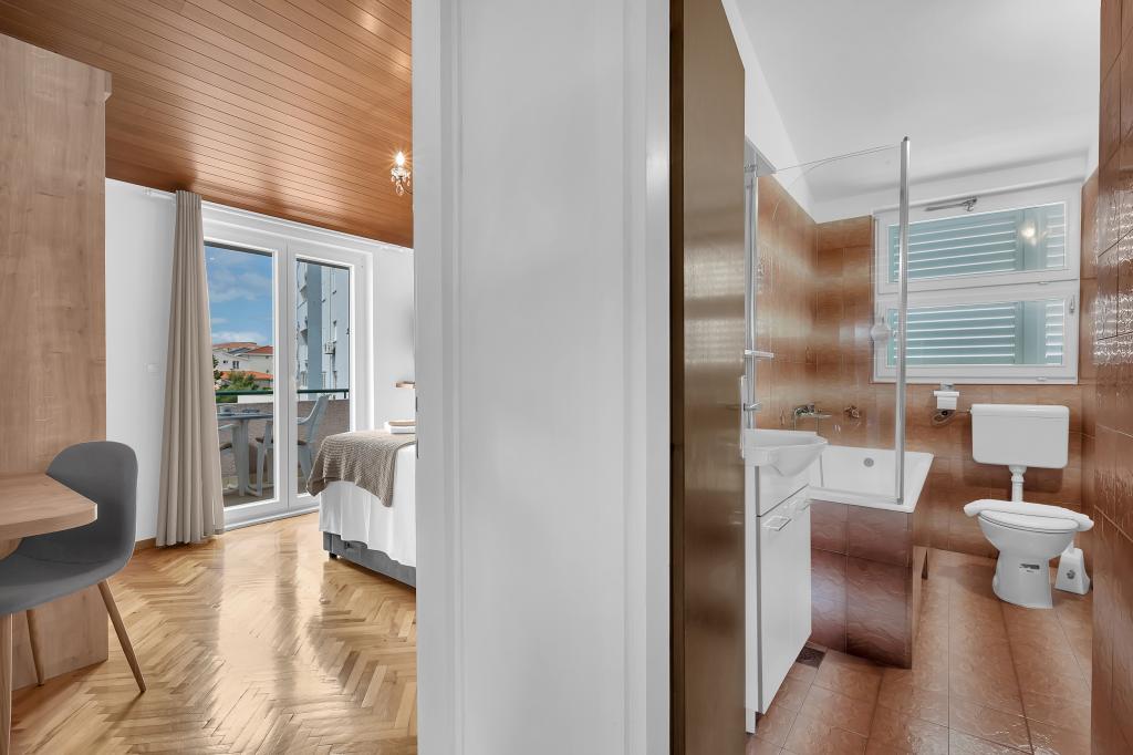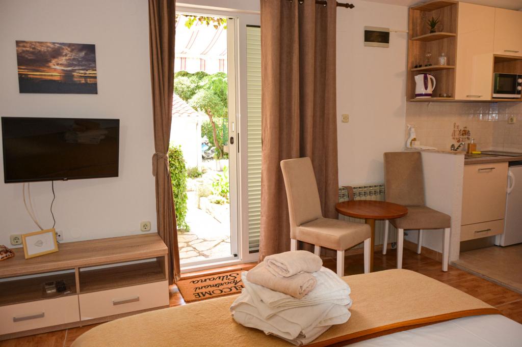Appartementen "Silvana" (vier appartementen en een studio) zijn gelegen in het centrum van Makarska, op slechts 80 meter van het zandstrand van de stad, dat gratis toegankelijk is. Al onze appartementen zijn uitgerust met een keuken, eetkamer, WiFi internet, satelliet-tv en een balkon, d.w.z. een terras, een tuin onder de kronen van Dalmatische bomen en met de geur van mediterrane kruiden. Alle appartementen zijn voorzien van centrale verwarming en airconditioning. Ze zijn ook geschikt voor wintertoerisme. Het water in huis bij alle kranen is drinkbaar. Alle appartementen hebben een eigen parkeerplaats. App 4+2, 2 x App 2+2, App 4+ 1 en Studio zijn volledig gerenoveerd en ingericht met nieuwe apparatuur.
