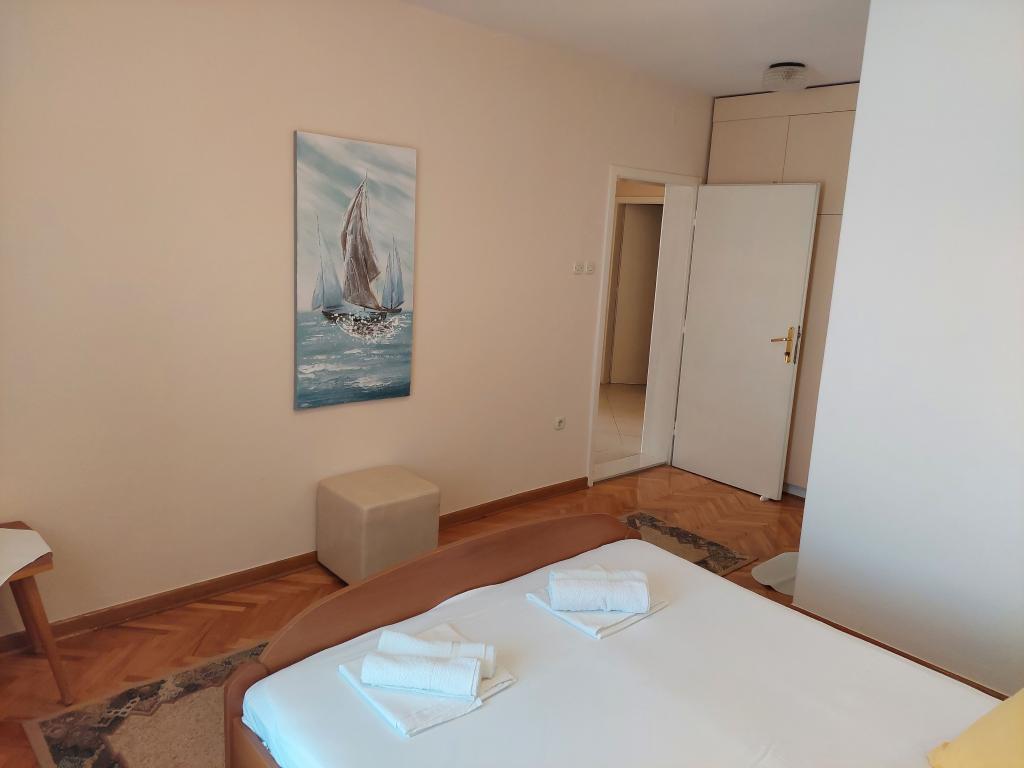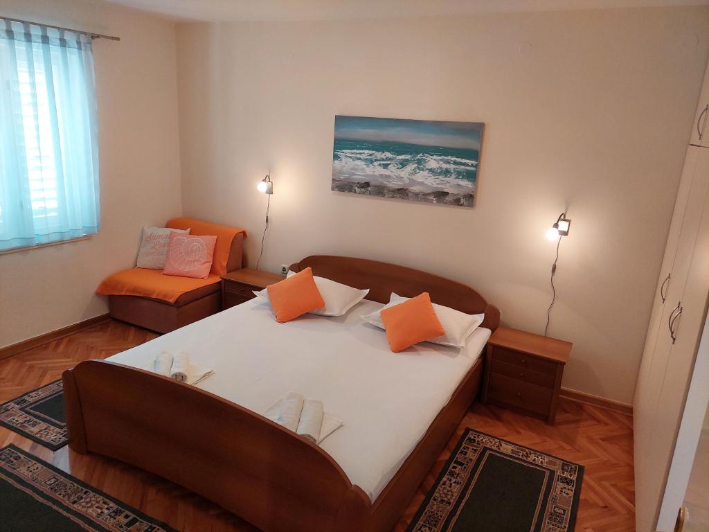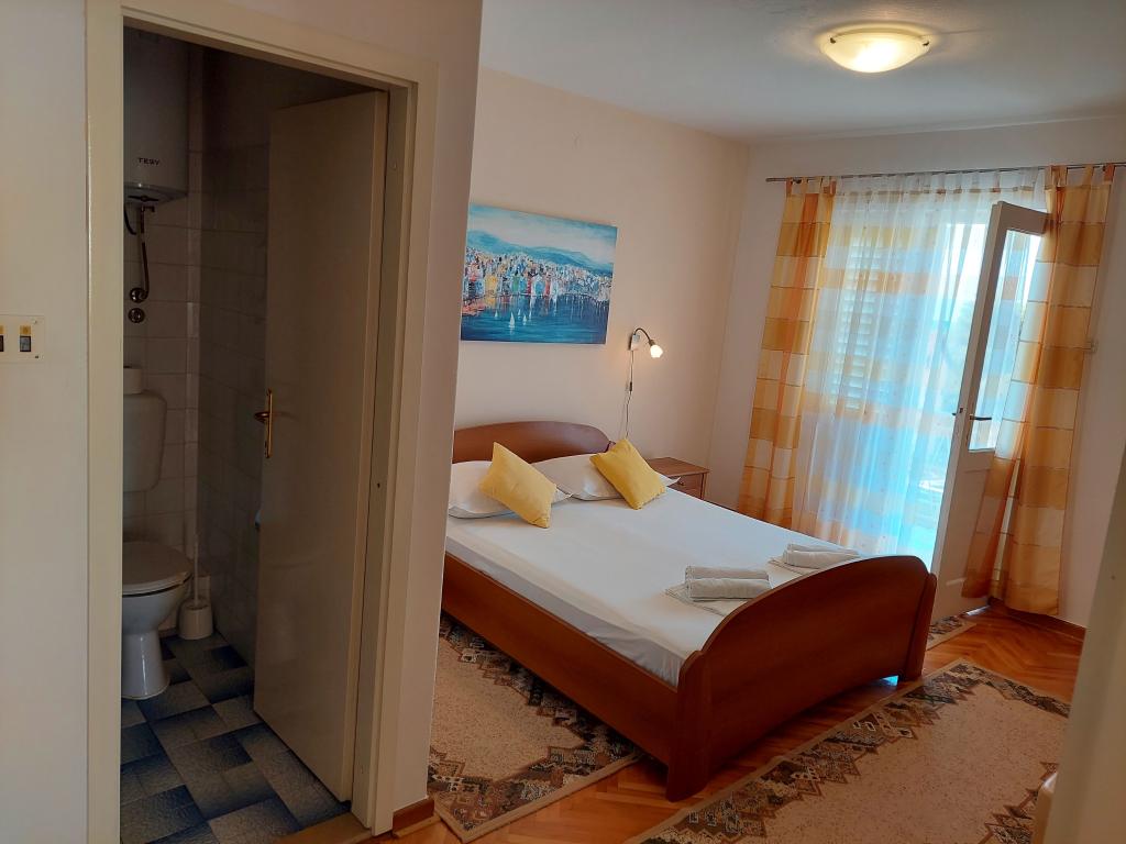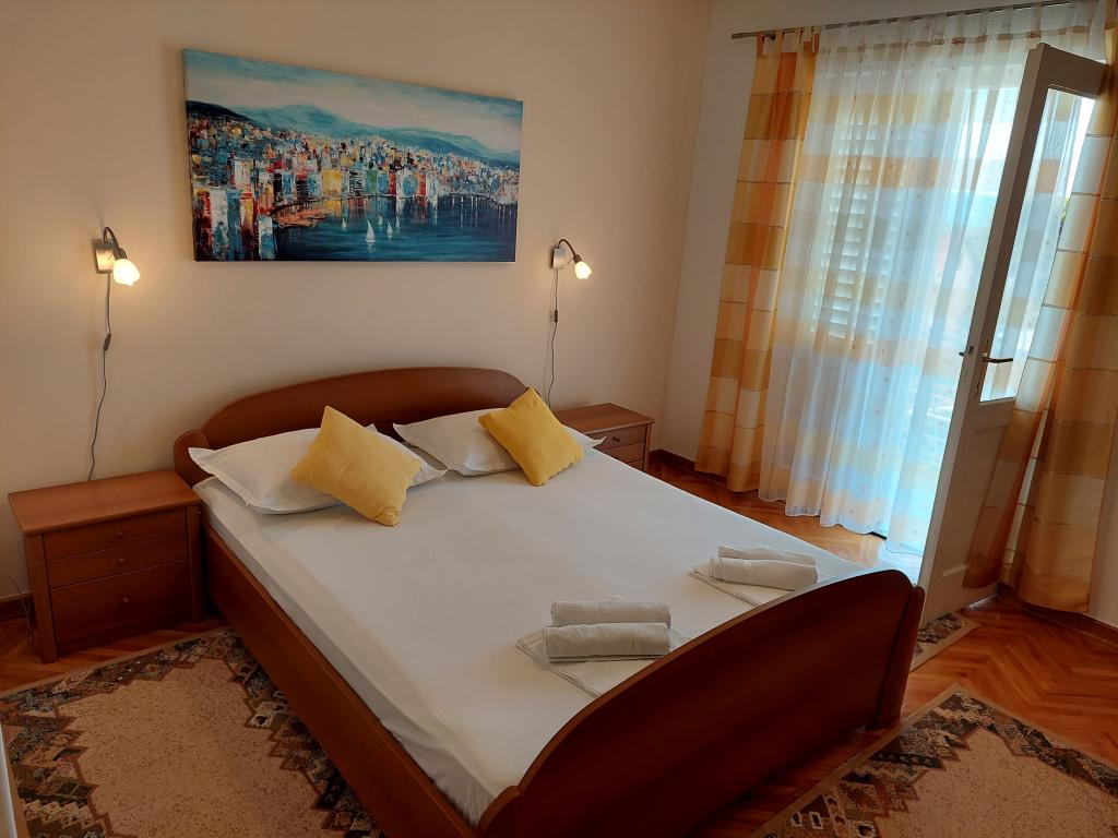 De appartementen bevinden zich op een aparte verdieping van een gezinswoning, omgeven door groen en bloemen. Er zijn parkeerplaatsen voor de auto's van alle gasten op de omheinde tuin. Elk appartement heeft 1-2 balkons waar u 's ochtends een heerlijke koffie kunt drinken met uitzicht op de zee en de eilanden Brač en Hvar. Een prachtig kiezelstrand met een dicht dennenbos bereikt u in 5 minuten, en het tenniscentrum in tien minuten. Via een prachtig versierde boulevard langs de zee is het stadscentrum in 15-20 minuten te bereiken. Appartement A4+1 is geschikt voor zowel een gezin als een groep vrienden omdat het 2 ruime slaapkamers met 2 badkamers bevat, een woonkamer met eetkamer en een keuken, voorzien van de nodige serviesgoed en apparatuur (koelkast met vriesvak, gasfornuis met oven, magnetron, ... ). Het appartement is voorzien van airconditioning en heeft twee balkons, uitgerust met tafels, stoelen en zonneschermen. De studio is modern uitgerust met een kleine keuken, een tweepersoonsbed, airconditioning en een tv, evenals een badkamer met douche en een balkon met een tafel en stoelen.