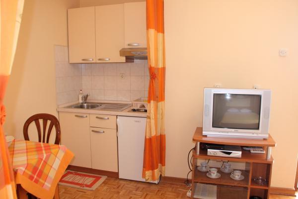 Een zeer vriendelijke gastvrouw, die altijd beschikbaar is als je iets nodig hebt. De studio is erg klein, maar heeft alles wat je nodig hebt voor een vakantie, 2 minuten naar 2 bakkerijen, een winkel in de buurt... het strand is ook beschikbaar op ongeveer 300 meter... Het strand heeft alles... zowel zon als rotsen , restaurants, een park voor kinderen... Naar het centrum van Makarska is een gemakkelijke wandeling van ongeveer 20 minuten over het strand. En ook heel belangrijk dat je de weg niet hoeft over te steken om bij het strand te komen, want er is een aanpak gemaakt voor de veiligheid.. ook toegankelijk voor rolstoelen..