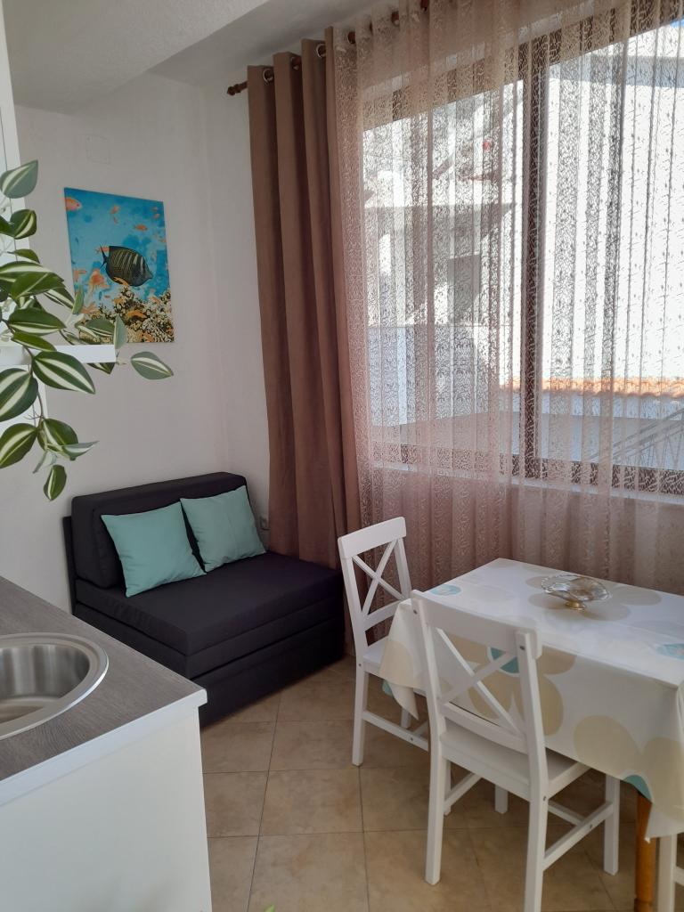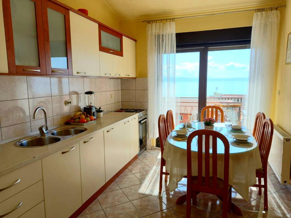 We zaten op de laatste verdieping in een familieappartement voor 4+1 personen. Volledig uitgerust, schoon, elegant ingericht appartement. Het uitzicht op zee vanaf het balkon is adembenemend. Er zijn ook 3 airconditioners, waardoor het mogelijk was om het appartement volledig te koelen. Ook hebben wij gebruik gemaakt van een wasmachine, naast 3 badkamers is er ook een woonkamer en een keuken, die aan alle wensen voldoet. De gastheren zijn erg behulpzaam, we raden het iedereen aan!