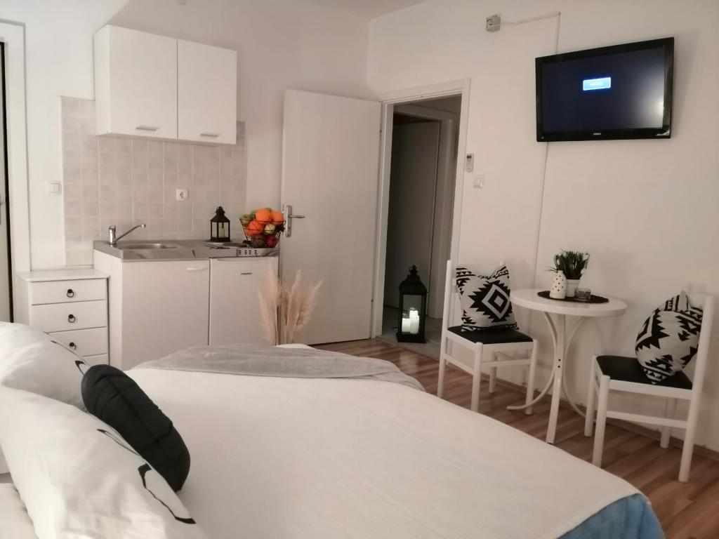 Appartementen Ravlic zijn een rustig deel van het westelijke deel van de stad Makarske.Svi belangrijke voorzieningen bevinden zich tot 400 meter (winkels, apotheken, markten, cafés ...) Afstand tot het strand 400 meter.