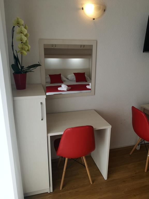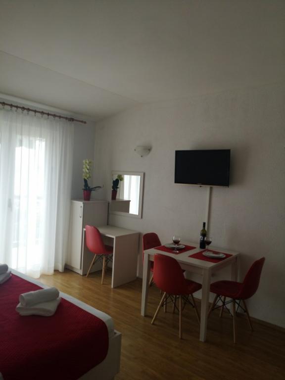 Appartementen Dević bevinden zich boven het centrum van de stad Makarska, op een rustige locatie met een prachtig uitzicht over de stad, de zee en de omliggende eilanden Brač en Hvar. Het prachtige kiezelstrand ligt op slechts 1000 meter afstand. De appartementen zijn omgeven door geurige mediterrane planten die uw verblijf ontspannen en aangenamer maken. Het appartement beschikt over een eigen parkeerplaats, een balkon met uitzicht op de zee, een keuken uitgerust met apparatuur, keukengerei en serviesgoed, een slaapkamer, een badkamer met douche, airconditioning en een tv.