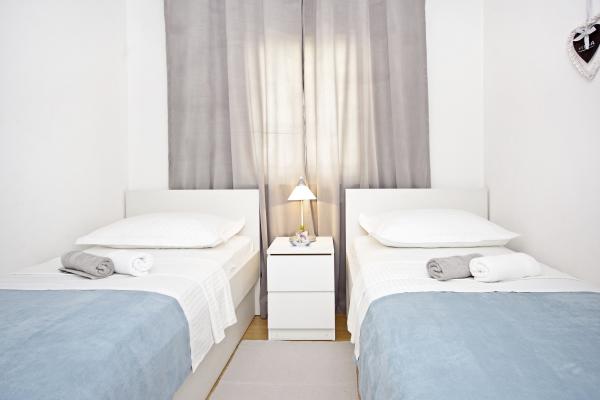 Nieuw ingerichte appartementen liggen in een gezinswoning gelegen max. 5 minuten lopen van het centrum van de stad en 5 minuten naar het kleine strand, het strand op 10 minuten lopen. Elk appartement heeft een aparte ingang, gasten hebben toegang tot een grote barbecue en een parkeerplaats. Een supermarkt ligt op 40 meter van het huis.