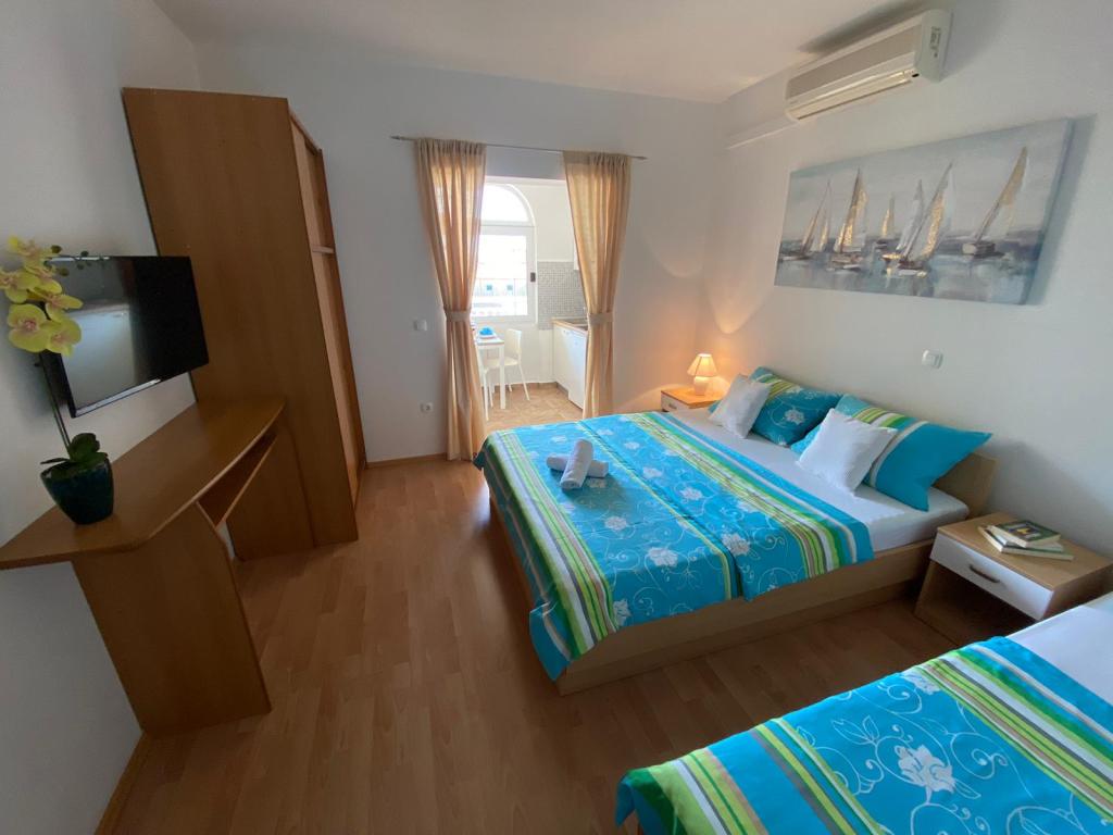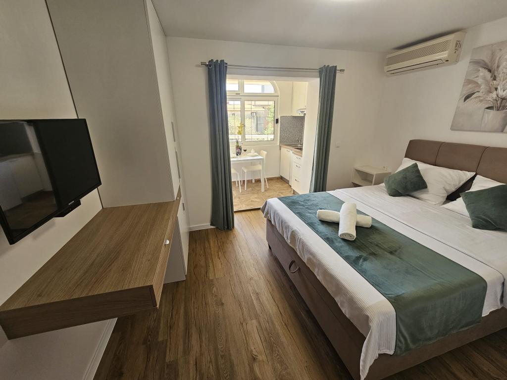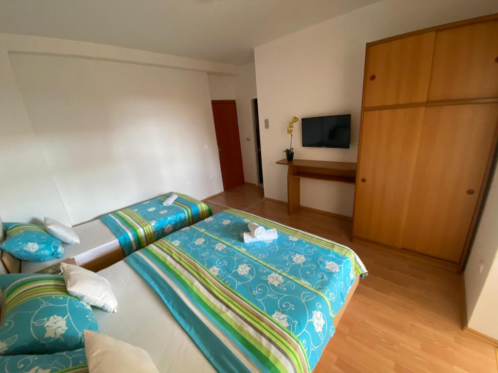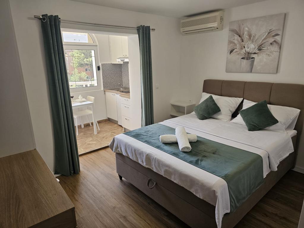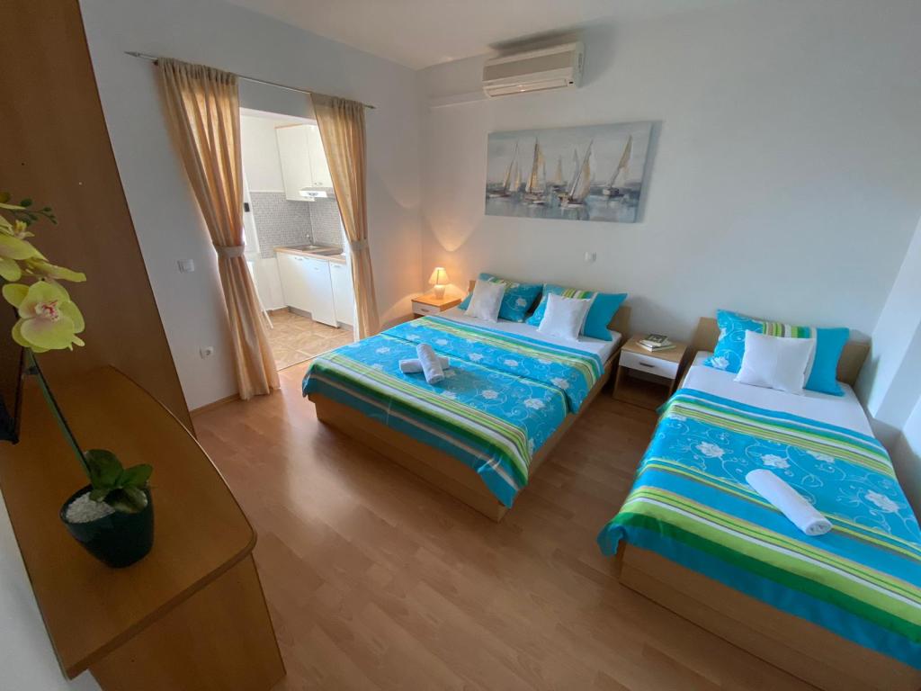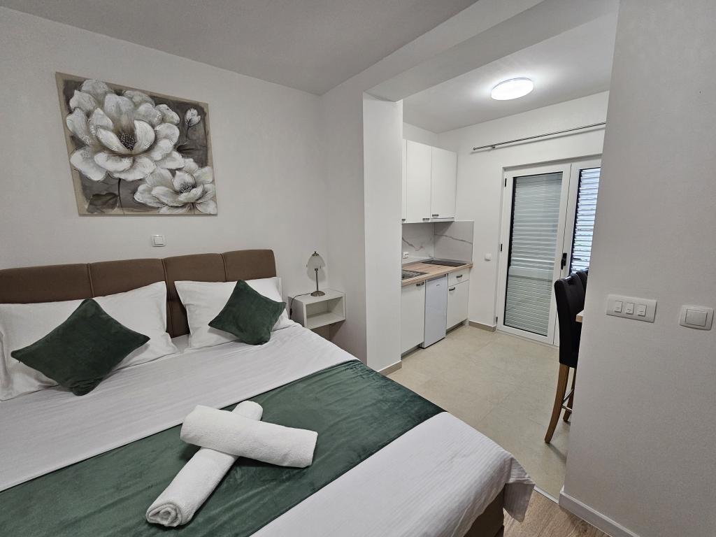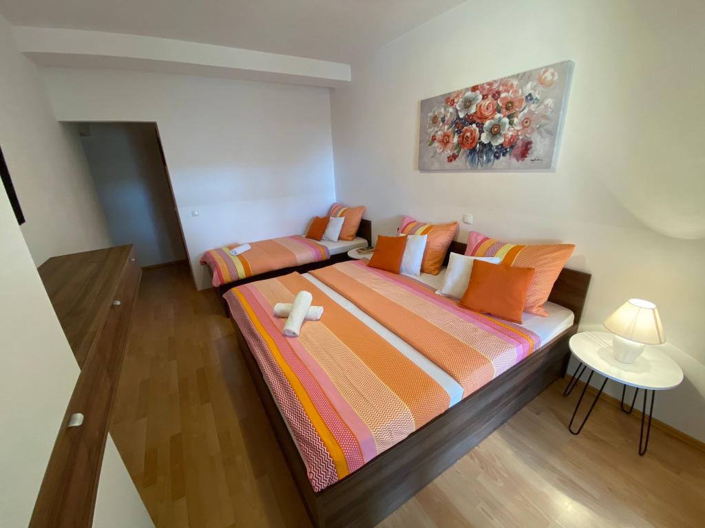 Appartementen Kovač zijn modern ingerichte appartementen in het hart van de stad Makarska. Het stadsstrand ligt op 250 meter afstand (minder dan 5 minuten lopen) en in minder dan 15 minuten bereikt u het stadscentrum, lopend langs de prachtige promenade langs wat volgens ons het mooiste strand ter wereld is. Restaurants, een bakkerij en een apotheek zijn gemakkelijk bereikbaar en de dichtstbijzijnde winkel voor uw dagelijkse boodschappen ligt op slechts 50 meter van het appartement. Elk appartement beschikt over een eigen badkamer, een volledig uitgeruste keuken, een balkon, airconditioning en alle nodige voorzieningen om onze gasten zich thuis te laten voelen. Aan de noordzijde van het huis bevindt zich een garagecomplex, zodat iedere gast een gratis overdekte parkeerplaats gegarandeerd heeft, van waaruit men op elk gewenst moment vrij kan in- en uitrijden. Het hele gezin is al jarenlang betrokken bij het toerisme en de verhuur. Wij hopen u binnenkort te mogen ontvangen in ons complex, waar u als gast aankomt en als vriend vertrekt.
