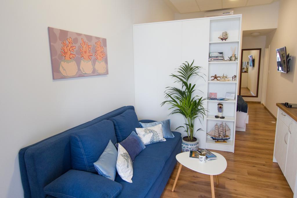 Appartementen Laura bevinden zich op de begane grond van een huis in het centrum van Makarska, vlakbij de haven en de zee. Alle essentiële voorzieningen zijn vlakbij (bank, postkantoor, apotheek, bakker, winkels, restaurants, veerhaven). Er is parkeergelegenheid direct voor het appartement.