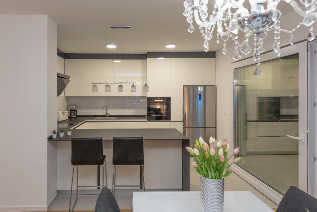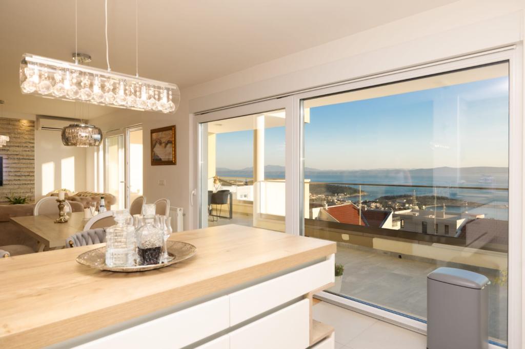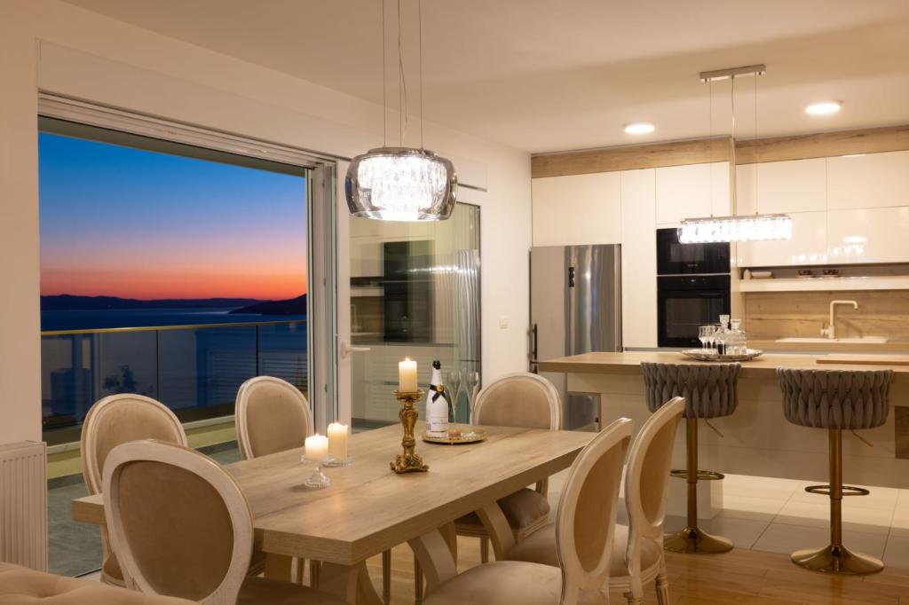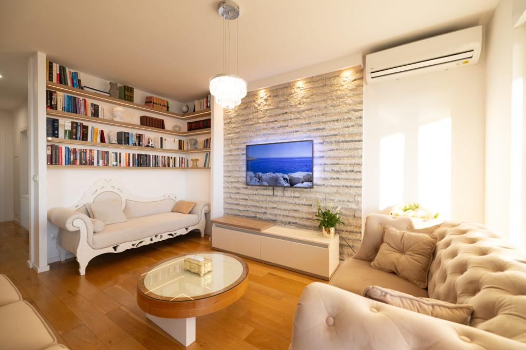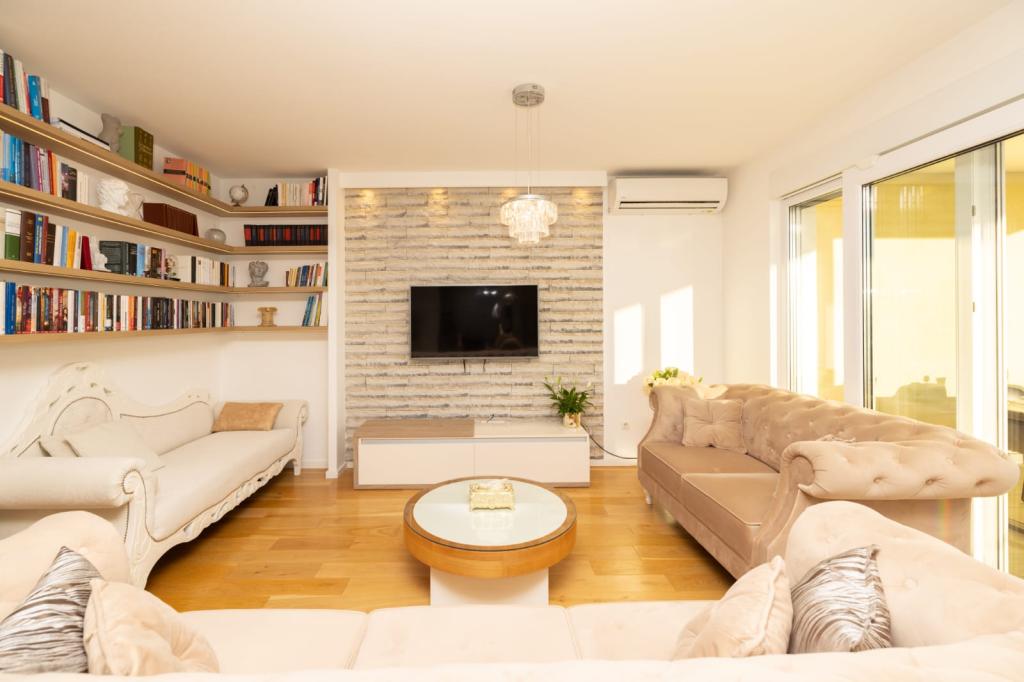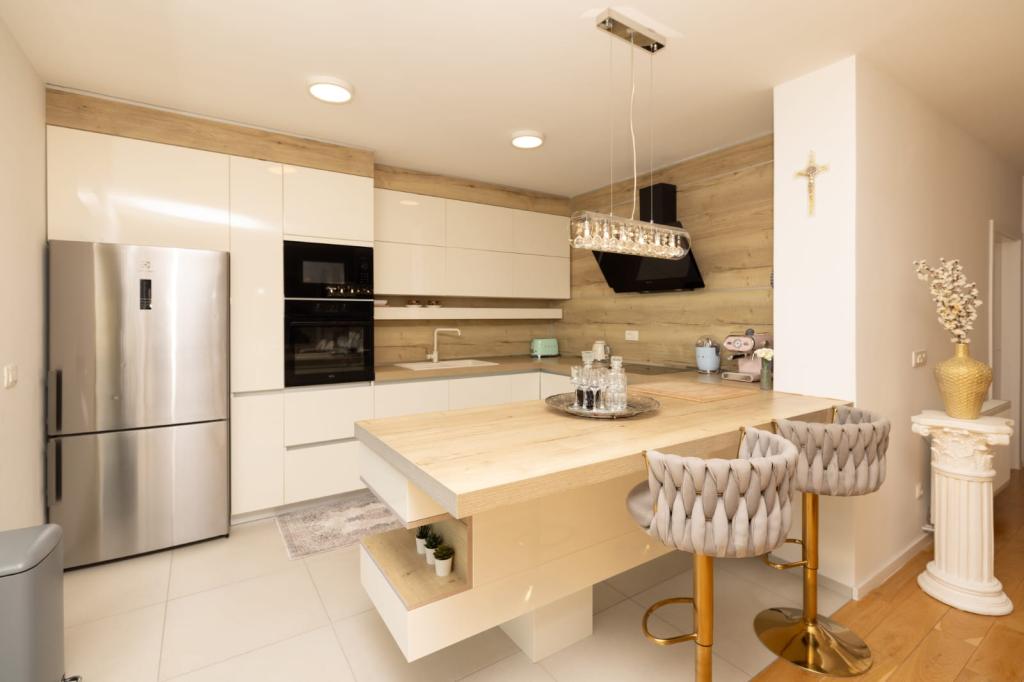 Penthouse Jure en Penthouse Nikola in Makarska zijn luxe en ruime appartementen van 135 m², ideaal voor een comfortabel en ontspannen verblijf. Elk appartement bestaat uit drie elegant ingerichte slaapkamers, twee modern uitgeruste badkamers, een garage en een groot terras met een spectaculair uitzicht op de zee en de stad, perfect om te genieten en te ontspannen. Gelegen in een rustige omgeving, op 2 km van het stadscentrum en 1 km van de zee, bieden ze een ideale combinatie van privacy en nabijheid van alle voorzieningen.