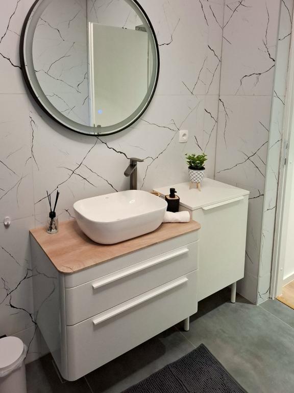 Apartman Marta 1 Makarska ligt in Makarska, op 36 km van het Blauwe Meer en op 6 minuten lopen van het Franciscaanse klooster van Makarska. Het appartement beschikt over een tuin en uitzicht op de tuin. De accommodatie met airconditioning ligt op 12 minuten lopen van Deep Port Beach en biedt gratis WiFi en privéparkeergelegenheid. Dit appartement heeft een balkon met uitzicht op de bergen en beschikt over 2 slaapkamers, een woonkamer, een flatscreen-tv, een uitgeruste keuken met een koelkast en een vaatwasser, en 2 badkamers met een douche. Handdoeken en beddengoed zijn aanwezig.