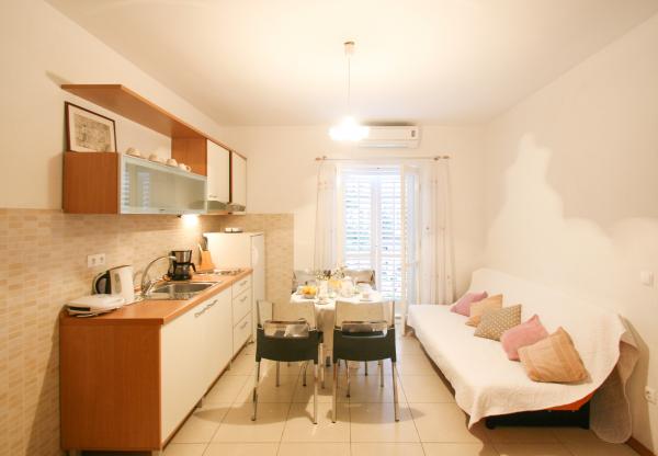 Eengezinswoning met appartementen is gelegen in een rustige woonwijk van Makarska, in de buurt van het strand en het hotel Dalmatië en Biokovka. Afstand van het centrum van de stad ligt op 10 minuten wandelen door de zee. De appartementen zijn modern en goed uitgerust. Alle units hebben een groot balkon in de groene. Parkeren is mogelijk.