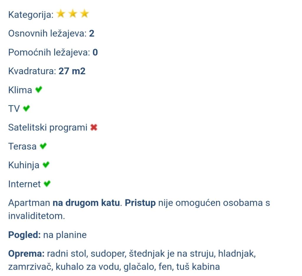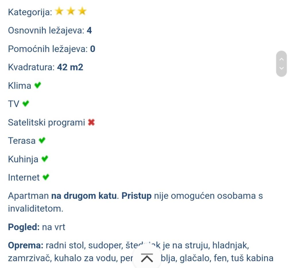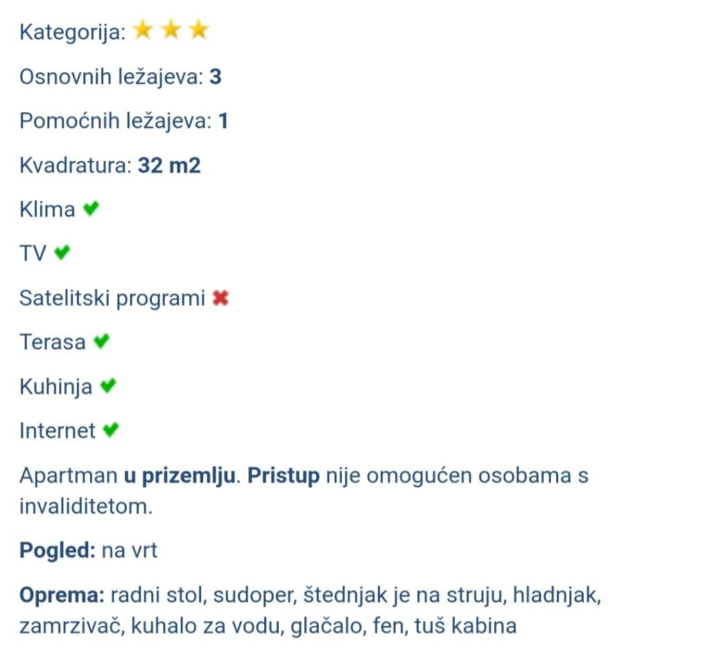 Alle lof voor onze lieve hospita, ze zijn erg aardig en staan altijd voor je klaar. Wat het appartement betreft, alles is netjes, schoon en ingericht, de hospita maakt elke ochtend schoon, wast de tuin en de trappen, alles is top. Vorig jaar waren we er, dit jaar zijn we er weer, en hopelijk volgend jaar ook. Ik zou iedereen die een vakantie wil en een zeer goede communicatie met de hospita wil aanbevelen, dat is onze Musija.