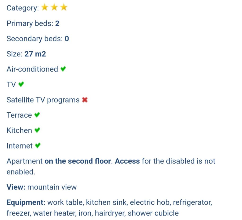 We verbleven samen met de kinderen in het appartement. Het is extreem schoon, de huishoudsters zijn uiterst behulpzaam en professioneel. De appartementen hebben een eigen gratis parkeerplaats, vlakbij is er een fruitkraam, diverse winkels, een apotheek, een bakkerij, een restaurant. Een gemakkelijke wandeling van 5 minuten naar het stadsstrand met een paar stappen, en minimaal bergopwaarts als u een omweg neemt. Het appartement ziet eruit zoals op de foto's. Omdat het heel dicht bij de hoofdweg ligt, kun je de auto's horen als je de ramen niet sluit. Aan het einde kregen we ook cognac cadeau. Alle aanbevelingen!