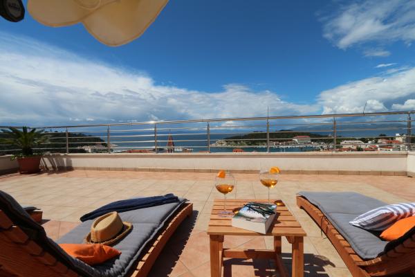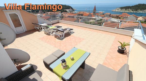 De appartementen en kamers van Villa Flamingo liggen in het stadscentrum, ver weg van de hoofdweg, in een rustige omgeving met een grote tuin en parkeergelegenheid. Alles bevindt zich in het stadscentrum, de appartementen liggen op 100 m van het centrale plein, 300 m van de waterkant en 500 m van het strand. De appartementen liggen ver van de hoofdweg, waardoor wij een rustige en stille vakantie garanderen. Voor het huis, in de tuin, bevindt zich een grote open haard waar u gegrilde gerechten kunt bereiden en in de prachtige ambiance van onze tuin kunt dineren. Het balkon biedt uitzicht op de zee en de haven van de stad, evenals de eilanden Brač en Hvar. Alle appartementen zijn voorzien van airconditioning, satelliettelevisie en WiFi-internet. In overleg met de gasten organiseren wij vervoer van de luchthaven naar het appartement. De appartementen beschikken over draadloos internet. Boven op het huis bevindt zich een groot terras met een prachtig uitzicht over de zee en de stad, dat door alle gasten gebruikt kan worden. Het is mogelijk om ontbijt, lunch en diner te organiseren in een nabijgelegen restaurant.