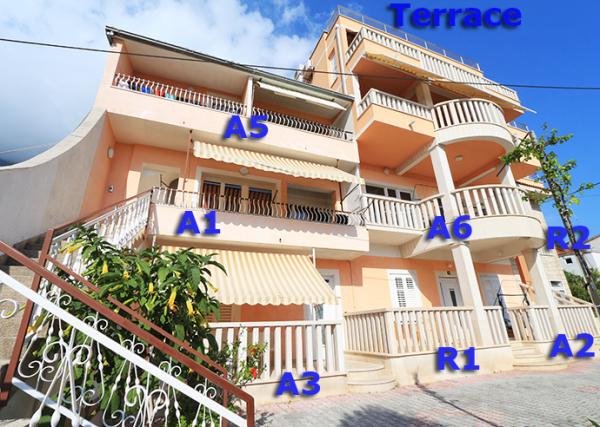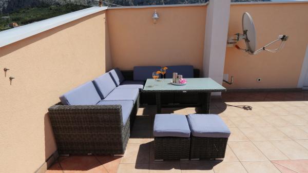 Fantastische appartementen, twee grote badkamers en drie slaapkamers met een prachtig prive-terras met uitzicht op de goed onderhouden tuin en bbq. Ongelooflijk gastvrije hosts - Eigenaren waren zeer vriendelijk, warm en vriendelijk en altijd begroet ons in de ochtend te zien als dingen waren goed. We waren zeer gelukkig om een nacht door te brengen met de eigenaar proeverij lokale grappa terwijl het horen over de geschiedenis en Kroatië de eerste hand. Geweldige locatie, 10 min lopen naar het strand, 5 min naar de belangrijkste centrum met supermarkten en tal van geldautomaten en 5 lopen naar het busstation als u komt uit Dubrovnik en Split. Op de top van de geweldige service en locatie, was er een ongelooflijke balkon op het dak met een adembenemend uitzicht op Makarska en de eilanden, zou ik zeggen dat een van de beste in de stad.