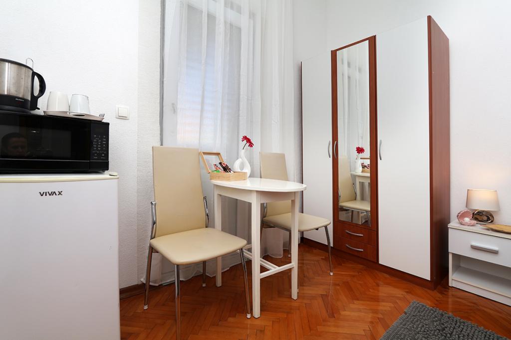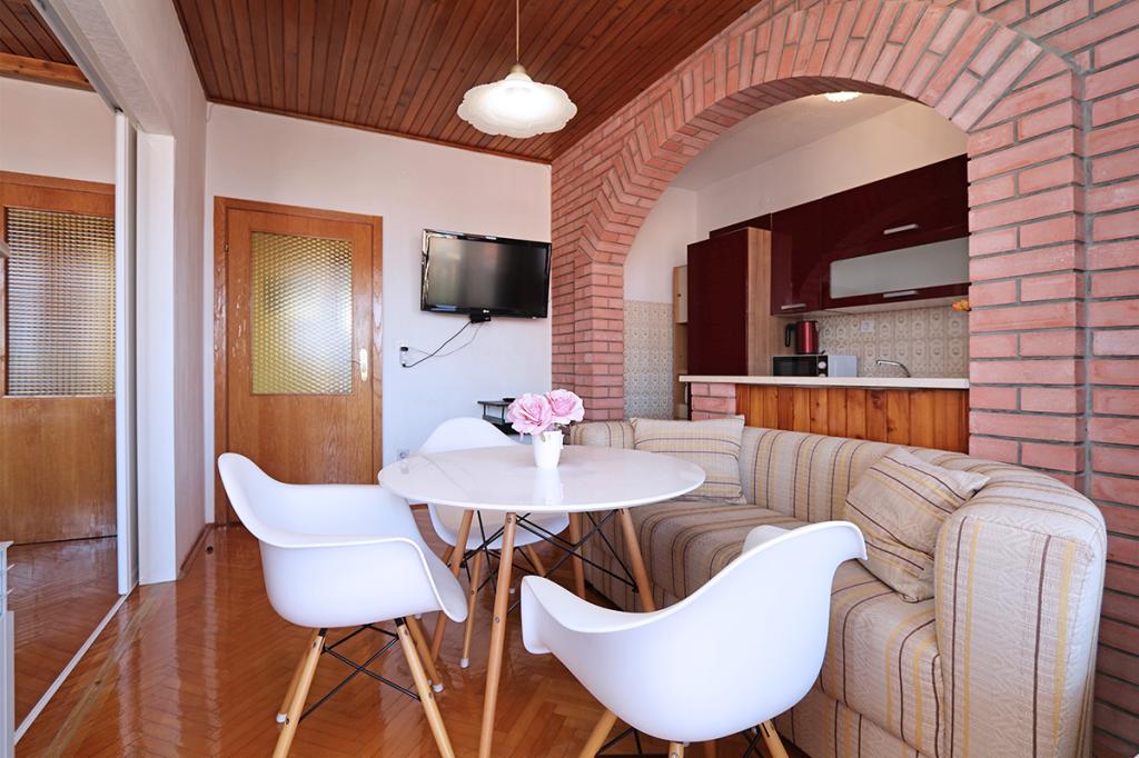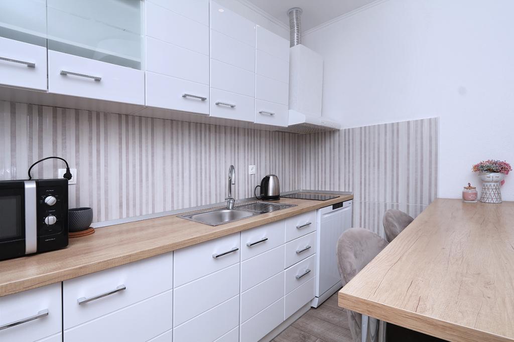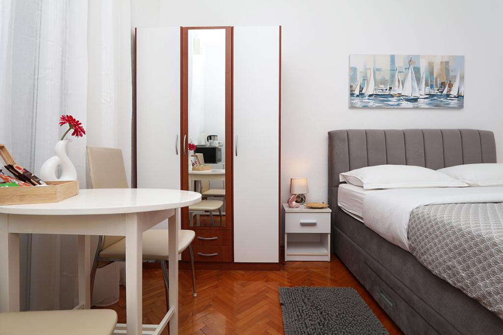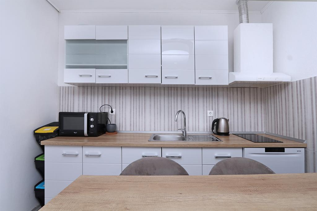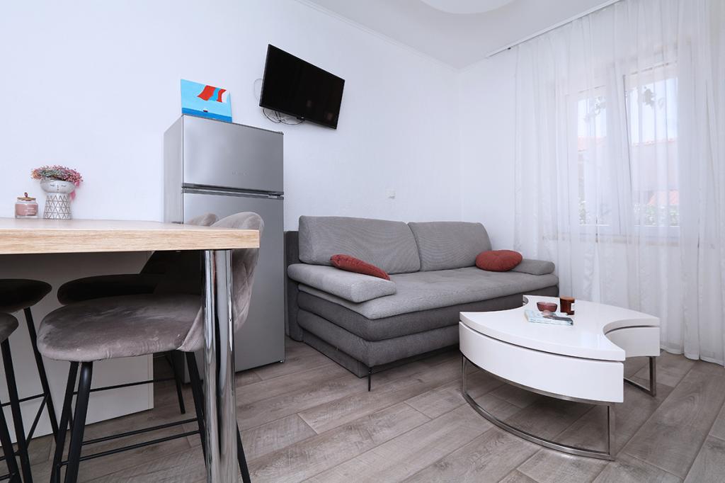 De accommodatie was zeer comfortabel voor ons gezin (2 volwassenen en een 16-jarige zoon), groot genoeg en goed uitgerust. De keuken is modern en bevat alles wat je nodig hebt (fornuis, magnetron, waterkoker, spoelbak en servies), het dient direct als woonkamer met een grote kamer en tegelijkertijd een slaapgedeelte voor onze volwassenen. De slaapkamer wordt als aparte ruimte ter beschikking gesteld - ergonomisch en compact: met een tweepersoonsbed en een kledingkast. De slaapkamer ligt aan de schaduwzijde van het appartement en biedt een koele ruimte. De badkamer is enorm en heeft een groot bad met douche. Er is daar een volledig functionele wasmachine en er is zelfs een föhn. Helaas hebben we maar één minpuntje opgemerkt: de airconditioning werkt niet naar behoren. Deze bevindt zich in de gang en dient het gehele appartement te koelen, alleen ventileren. Het appartement heeft een eigen terras dat prachtig is. In het wooncomplex op de bovenste verdieping is er een groot terras voor alle gasten, dat een geweldig uitzicht biedt op de zee, de oude stad en de stad als geheel. Gewoon erg handig om de zonsondergangen te bewonderen. Wij zijn voor de 5e keer op vakantie in Makarska en kunnen daarmee vergelijken met eerdere accommodaties: dat was een TOP appartement met zeer vriendelijke verhuurders en een mooie centrale ligging in hartje oude stad.