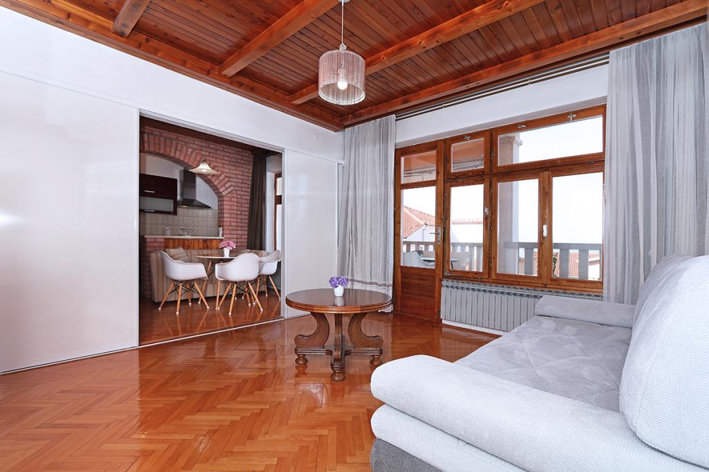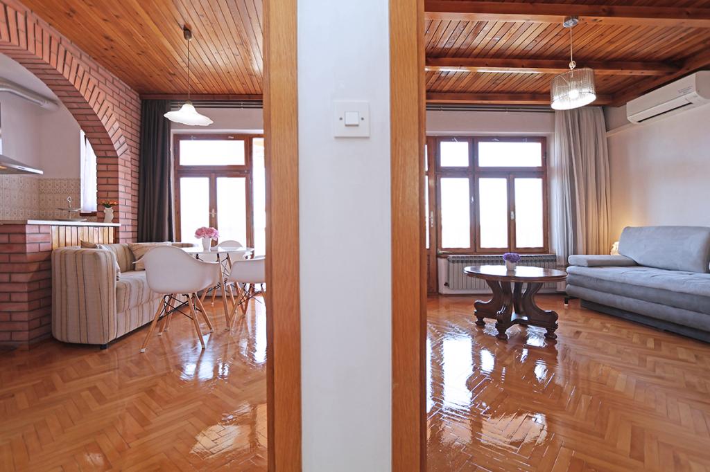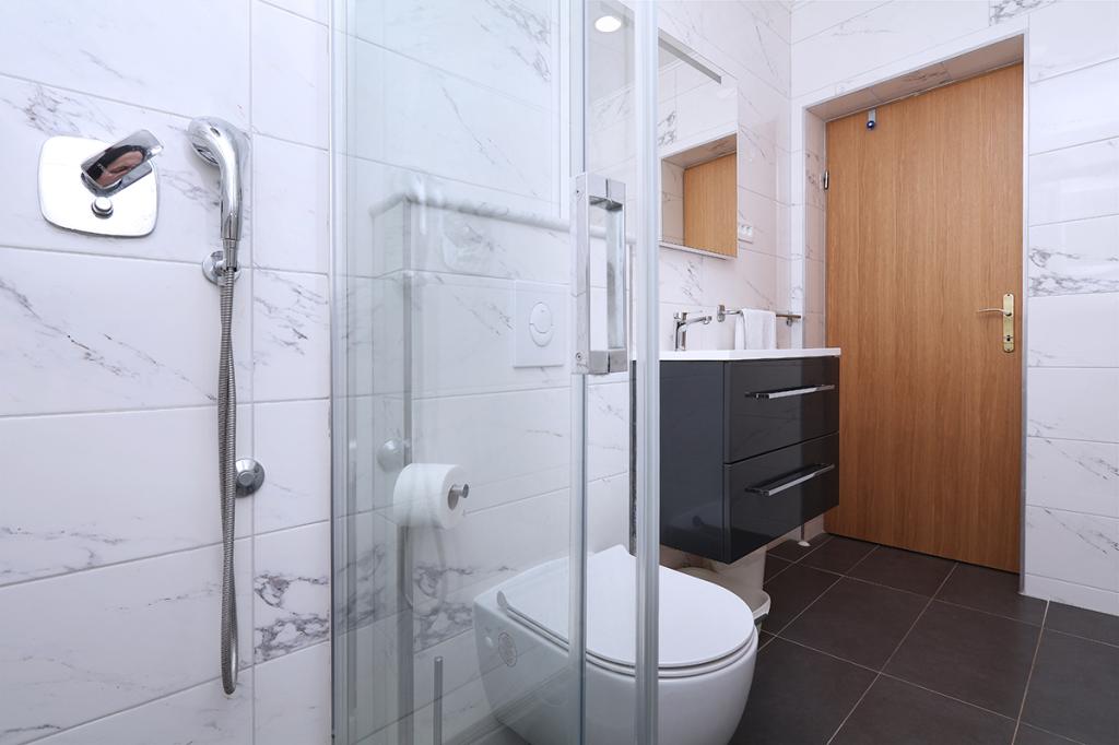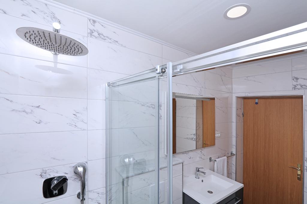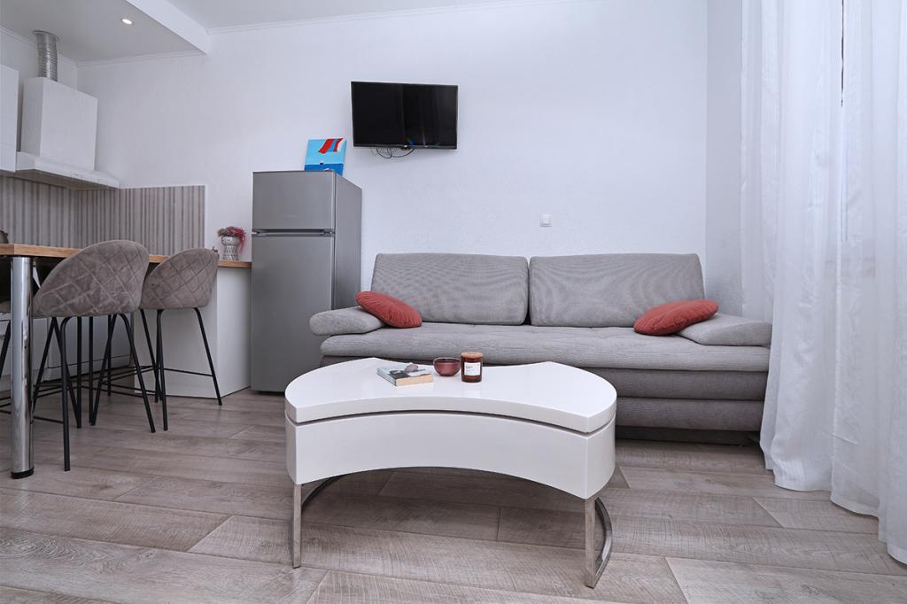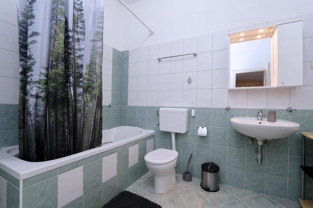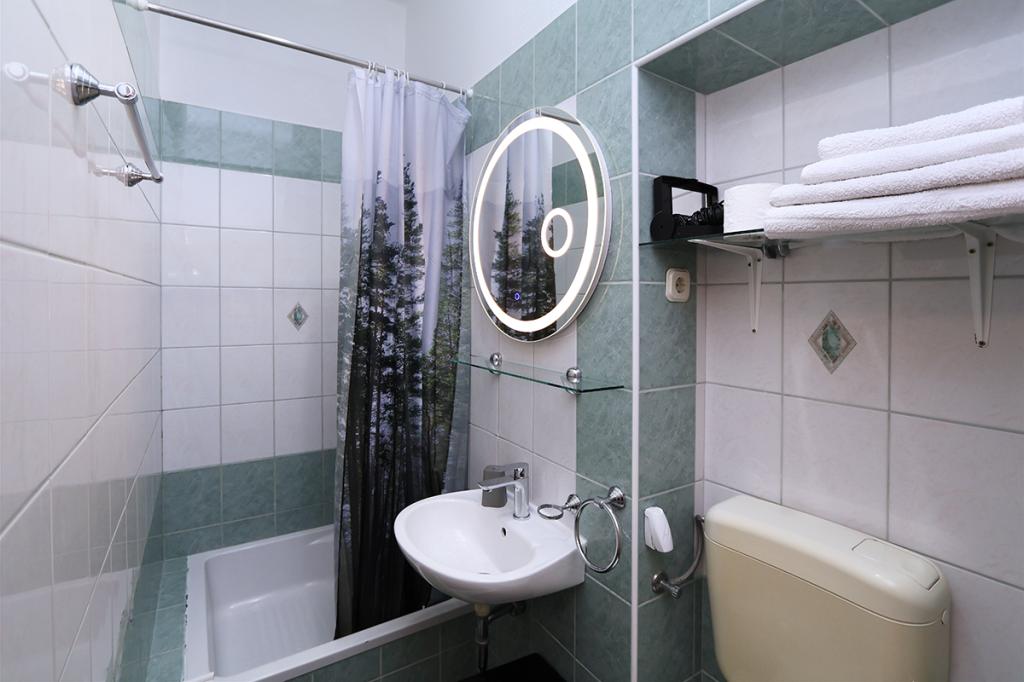De accommodatie was zeer comfortabel voor ons gezin (2 volwassenen en een 16-jarige zoon), groot genoeg en goed uitgerust. De keuken is modern en bevat alles wat je nodig hebt (fornuis, magnetron, waterkoker, spoelbak en servies), het dient direct als woonkamer met een grote kamer en tegelijkertijd een slaapgedeelte voor onze volwassenen. De slaapkamer wordt als aparte ruimte ter beschikking gesteld - ergonomisch en compact: met een tweepersoonsbed en een kledingkast. De slaapkamer ligt aan de schaduwzijde van het appartement en biedt een koele ruimte. De badkamer is enorm en heeft een groot bad met douche. Er is daar een volledig functionele wasmachine en er is zelfs een föhn. Helaas hebben we maar één minpuntje opgemerkt: de airconditioning werkt niet naar behoren. Deze bevindt zich in de gang en dient het gehele appartement te koelen, alleen ventileren. Het appartement heeft een eigen terras dat prachtig is. In het wooncomplex op de bovenste verdieping is er een groot terras voor alle gasten, dat een geweldig uitzicht biedt op de zee, de oude stad en de stad als geheel. Gewoon erg handig om de zonsondergangen te bewonderen. Wij zijn voor de 5e keer op vakantie in Makarska en kunnen daarmee vergelijken met eerdere accommodaties: dat was een TOP appartement met zeer vriendelijke verhuurders en een mooie centrale ligging in hartje oude stad.