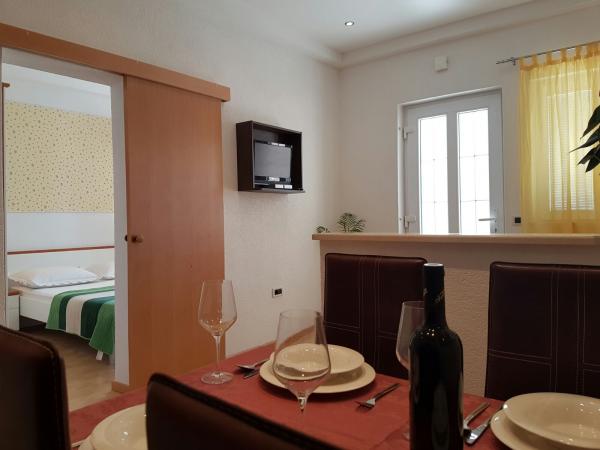Ik beveel Roso Apartments het meest aan. Kamers schoon en netjes, volledig uitgerust. Heel dicht bij de winkel en bakker. Een geweldige plek om rond te hangen. Ik beveel en begroet
