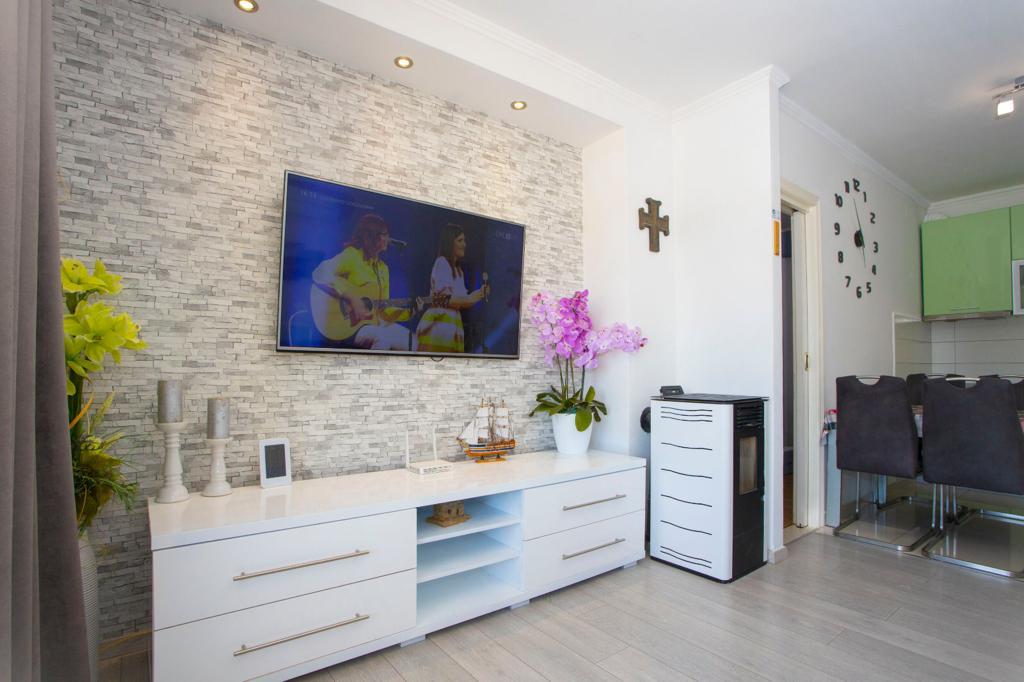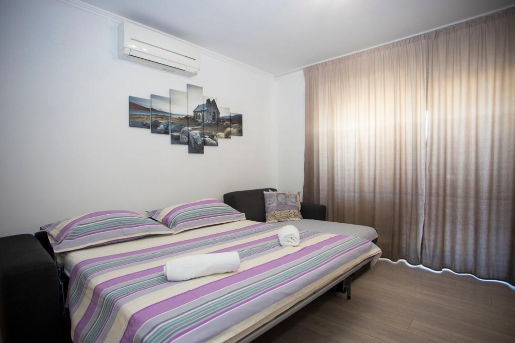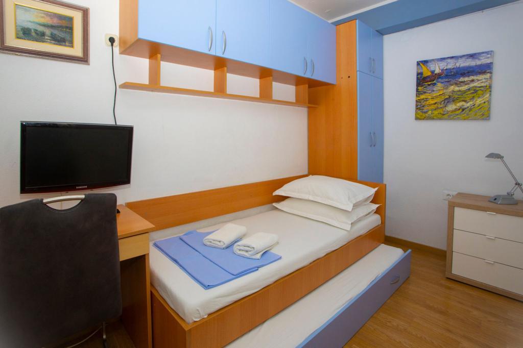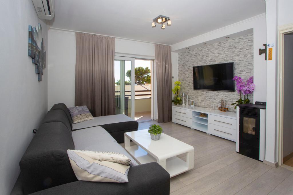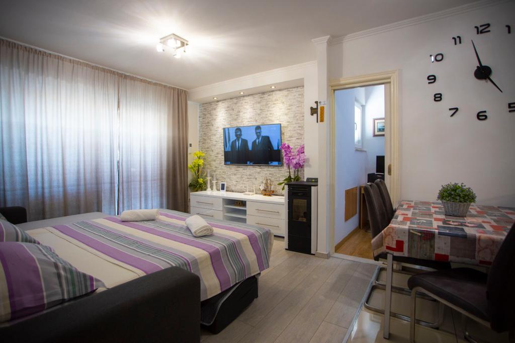 Compleet, luxe appartement van 80m2 op de 2e verdieping van een vrijstaand gebouw met parkeerplaats, appartement bestaat uit 3 slaapkamers 2 badkamers keuken, woonkamer met toegang tot balkon.Apartman is uitgerust met een vaatwasser, wasmachine, grote fližderom met vriesvak, oven, magnetron oven, koffiezetapparaat, 2 LCD TV, DVD, satelliet met het programma 3000, een computer met gratis internet, airconditioning ,, het appartement kan een maximum van 8 osoba.Apartman gelegen in het oostelijke deel van de stad op 400 m van het strand Osejava en het centrum van de stad, 200 tegemoet m van het sportcentrum en de supermarkt Lidl, 4oo in het rustige gedeelte van de 0,5 minuten lopen van het centrum en 10 minuten lopen naar het strand
