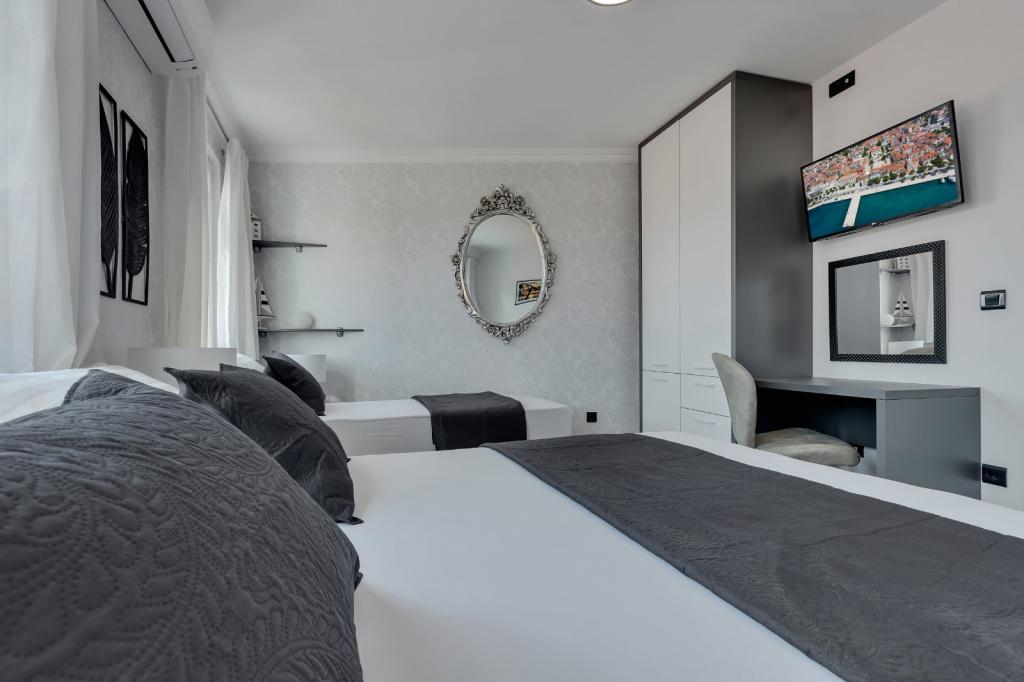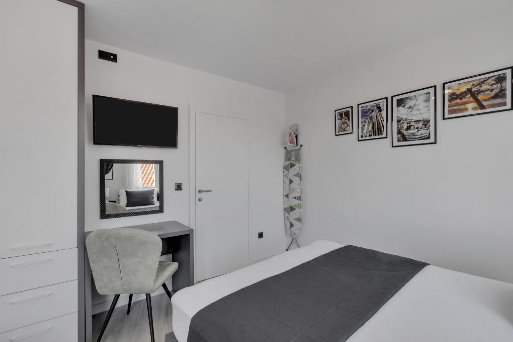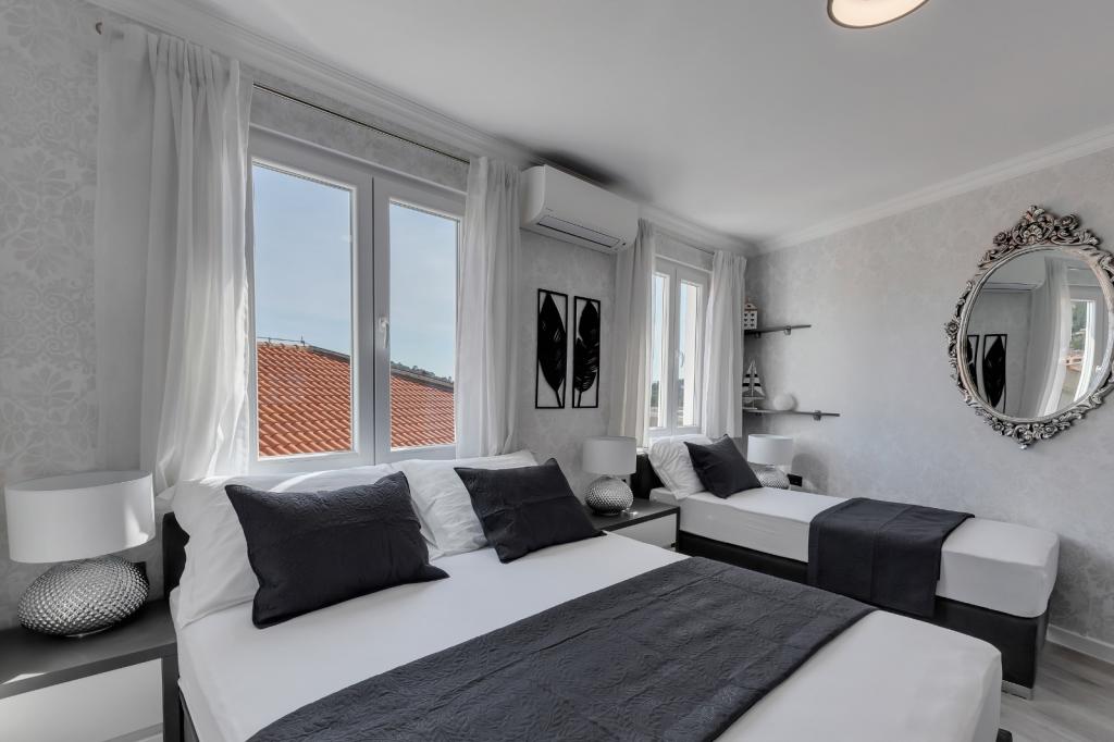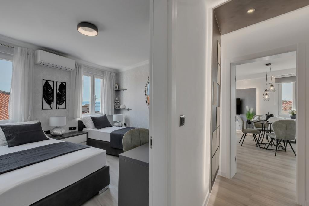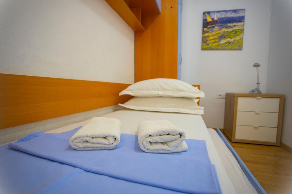 Compleet, luxe appartement van 80m2 op de 2e verdieping van een vrijstaand gebouw met parkeerplaats, appartement bestaat uit 3 slaapkamers 2 badkamers keuken, woonkamer met toegang tot balkon.Apartman is uitgerust met een vaatwasser, wasmachine, grote fližderom met vriesvak, oven, magnetron oven, koffiezetapparaat, 2 LCD TV, DVD, satelliet met het programma 3000, een computer met gratis internet, airconditioning ,, het appartement kan een maximum van 8 osoba.Apartman gelegen in het oostelijke deel van de stad op 400 m van het strand Osejava en het centrum van de stad, 200 tegemoet m van het sportcentrum en de supermarkt Lidl, 4oo in het rustige gedeelte van de 0,5 minuten lopen van het centrum en 10 minuten lopen naar het strand