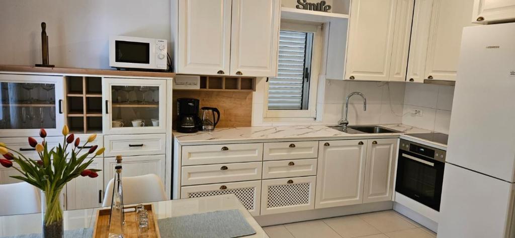 Villa Branka is een charmant huis met vijf aparte accommodaties, ideaal voor een ontspannen vakantie in de natuur. Omgeven door groen en gelegen op een unieke locatie met uitzicht op de Adriatische Zee aan de ene kant en de majestueuze Biokovo-berg aan de andere kant. Het is gelegen in een uitzonderlijk rustig deel van de Makarska Riviera, op een glooiende heuvel, ver weg van de toeristische drukte en het lawaai - perfect voor complete ontspanning en privacy. Tegelijkertijd ligt de villa op slechts 2 minuten rijden van het strand en op 5 minuten rijden van het centrum van Makarska, een pittoresk toeristisch stadje met een rijk aanbod aan voorzieningen, restaurants en prachtige stranden. De perfecte combinatie van rust, natuur en de nabijheid van alle belangrijke voorzieningen.