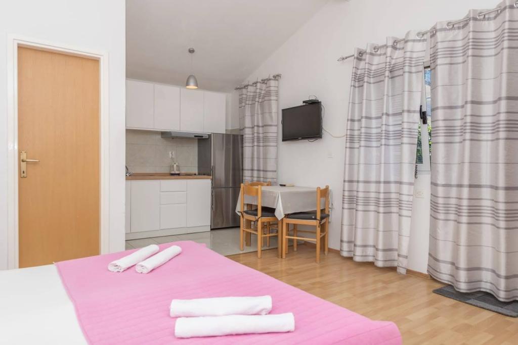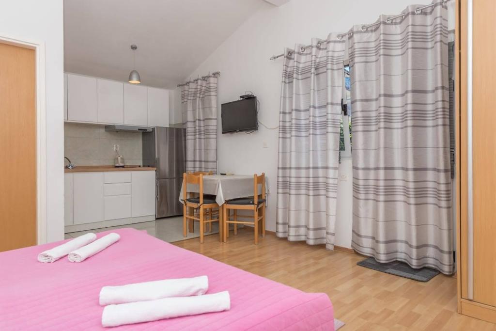 De appartementen liggen op 150 meter van het strand en restaurants, op 500 meter van het centrum, en beschikken over een eigen parkeerplaats, airconditioning, wifi, tv, een terras met zeezicht en een korting van 20 meter. We bieden verschillende appartementen aan: studio's met 2 slaapkamers en 1 badkamer, studio's met 2 slaapkamers en 2 badkamers, en appartementen met één slaapkamer met 3 slaapkamers en 2 badkamers. Neem voor meer informatie contact op met de verhuurder. Met vriendelijke groet, Andrea Roso.