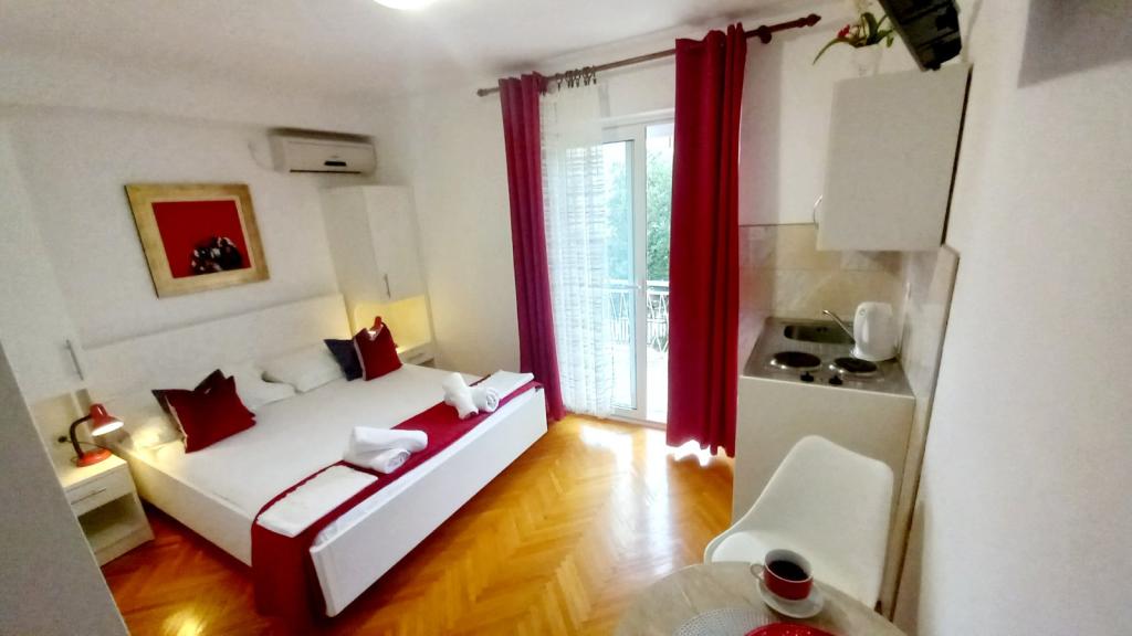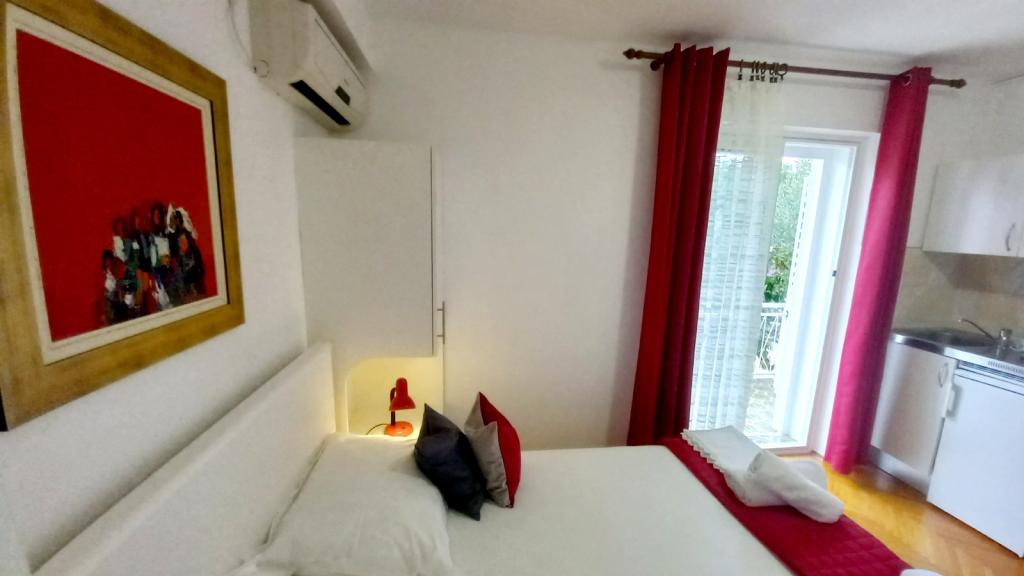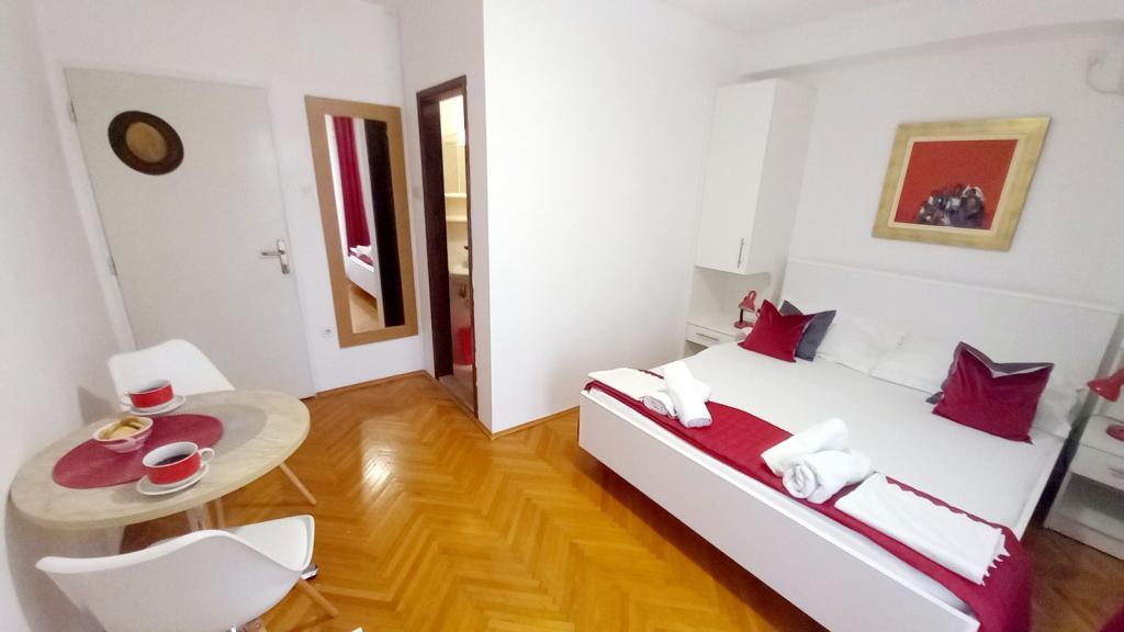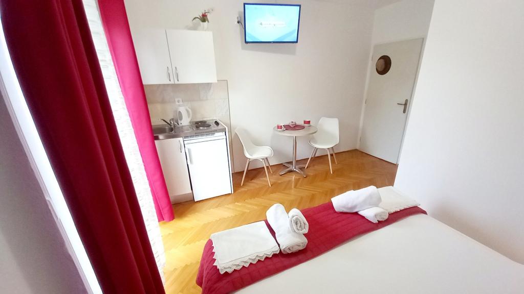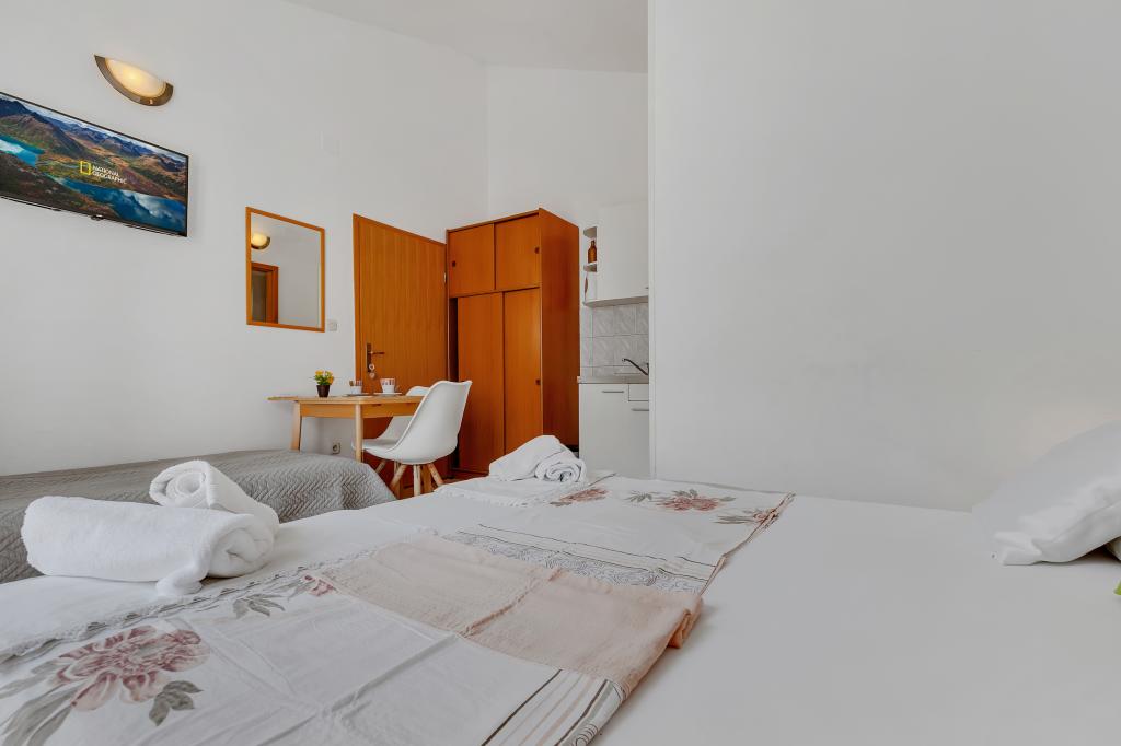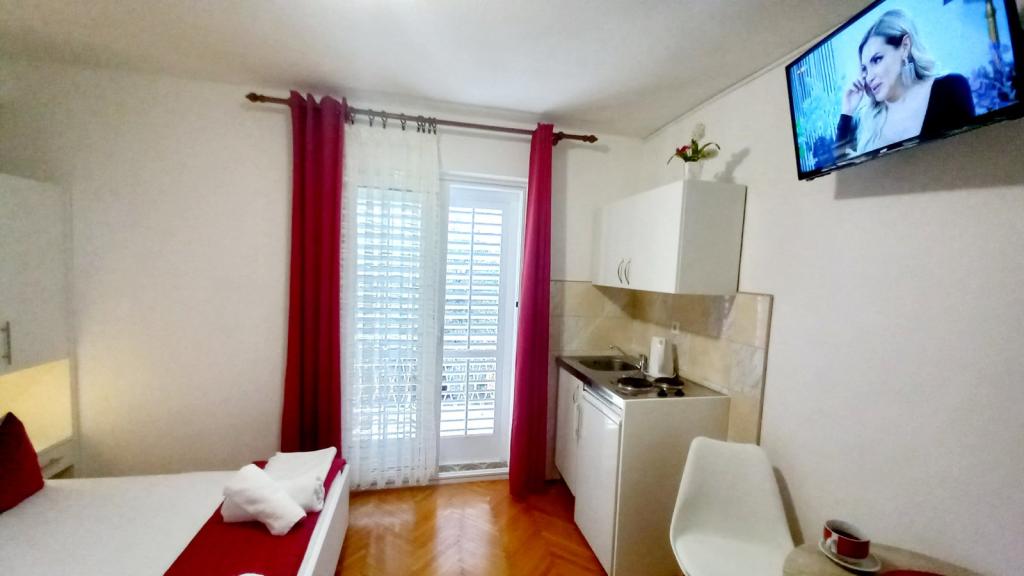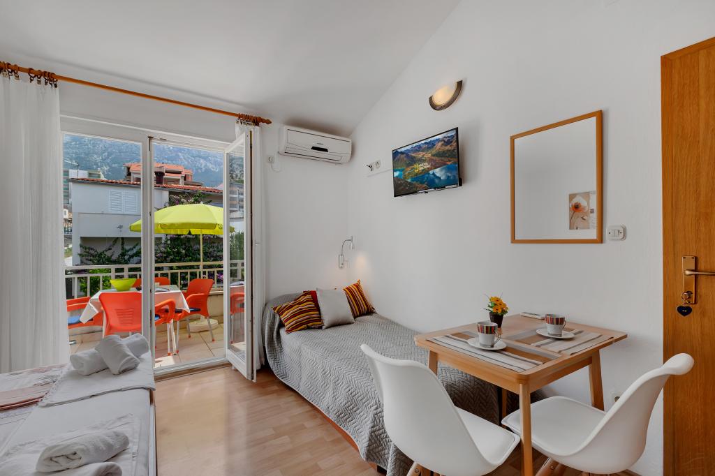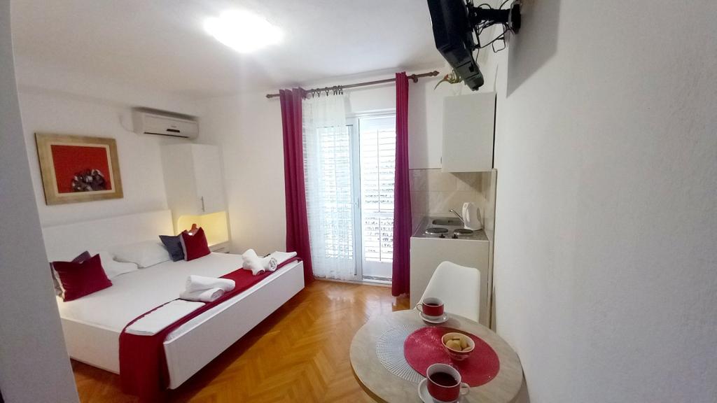 Uitstekend appartement en locatie in Makarska, voor al diegenen die rust en stilte willen die een vakantie aan zee willen. Mevrouw Miranda staat altijd voor u klaar en is zeer professioneel op het gebied van boeking, communicatie en alle behoeften die een gast nodig heeft tijdens hun verblijf in Makarska en in haar prachtige appartement. Schone en nette studio zoals te zien op de foto's zonder onaangename verrassingen, kamers met airconditioning, uitzicht op zee en de geur van bedwelmende dennen. In de buurt is alles wat u nodig heeft tijdens uw verblijf, bakkerij, markt, wasserette, fruit, wisselkantoor, tankstation, fietsverhuur of scooter. Een warme aanbeveling voor iedereen die Makarska en de Rivièra wil bezoeken.