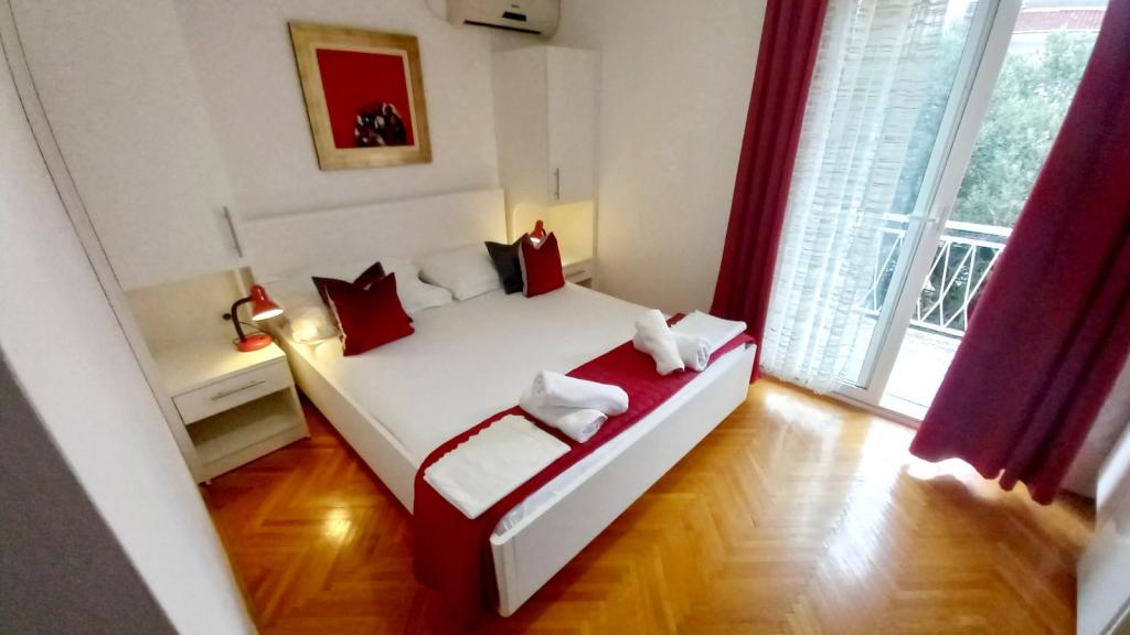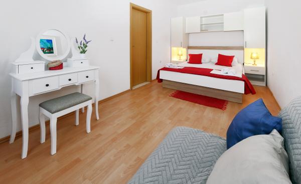 Villa Miranda ligt bij de ingang van Makarska bij Split, in de eerste straat naar de hoofdweg. Hoewel het in de stad, Zagrebačka 94, volledig is omgeven door autochtone natuur - steen, olijfbomen en hoge amandelbomen (amandelen) verspreid over grote gebieden rond het huis. Alle appartementen en studio's zijn voorzien van airconditioning en bieden satelliet-tv, WiFi, grote parkeergelegenheid en een grill. Het is niet nodig met de andere gasten te onderhandelen over de grill, omdat er verschillende roosters beschikbaar zijn. De villa is een toerist, gericht op uw rustige en comfortabele verblijf. Het is 10 minuten lopen naar prachtige zandstranden en 15-20 minuten lopen naar het centrum van Makarska. Op een steenworp afstand is de café-bar met bijbehorende voorzieningen, fietsverhuur en scooterverhuur. Slechts 5 minuten lopen is een apotheek, bakker, supermarkt, geldautomaat. Vlakbij ligt het beroemde Vepric-heiligdom, bekend als het Kroatische Lourdes, en de tennisbanen liggen op 400 meter afstand, evenals de discotheek op het strand. U kunt uw huisdier meenemen, evenals fietsen