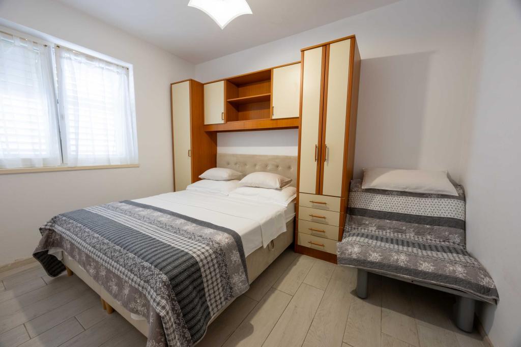 Dicht bij het strand van Makarska - 70 meter van het hoofdstrand (ongeveer 1 minuut lopen) Gratis parkeren Gratis wifi Gratis gebruik van airconditioning Onze appartementen: V1 - appartement voor 5 personen, begane grond, een tweepersoonsbed en een eenpersoonsbed in de slaapkamer, en een slaapbank in de woonkamer V2 - studio voor 3 personen, derde verdieping, een tweepersoonsbed en een eenpersoonsbed, balkon met zeezicht V3 - studio voor 3 personen, derde verdieping, een tweepersoonsbed en een eenpersoonsbed, balkon met zeezicht V4 - appartement voor 4 personen, derde verdieping, een tweepersoonsbed in de slaapkamer en een slaapbank in de woonkamer, balkon met zeezicht V5 - appartement voor 5 personen, derde verdieping, een tweepersoonsbed en een kleine slaapbank in de slaapkamer, en een grote slaapbank in de woonkamer, balkon met zeezicht, keuken, badkamer/wc Alle appartementen hebben een eigen keuken en badkamer/wc. Voor prijzen en andere vragen kunt u contact met ons opnemen.