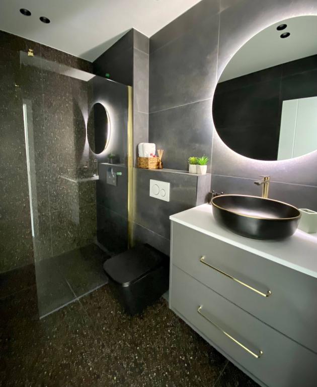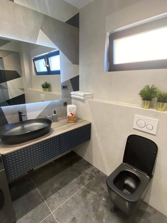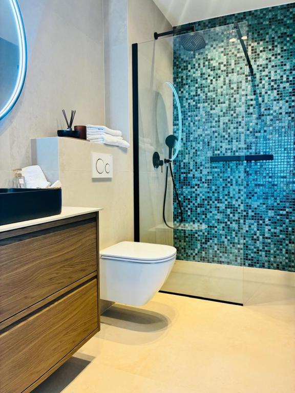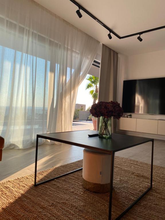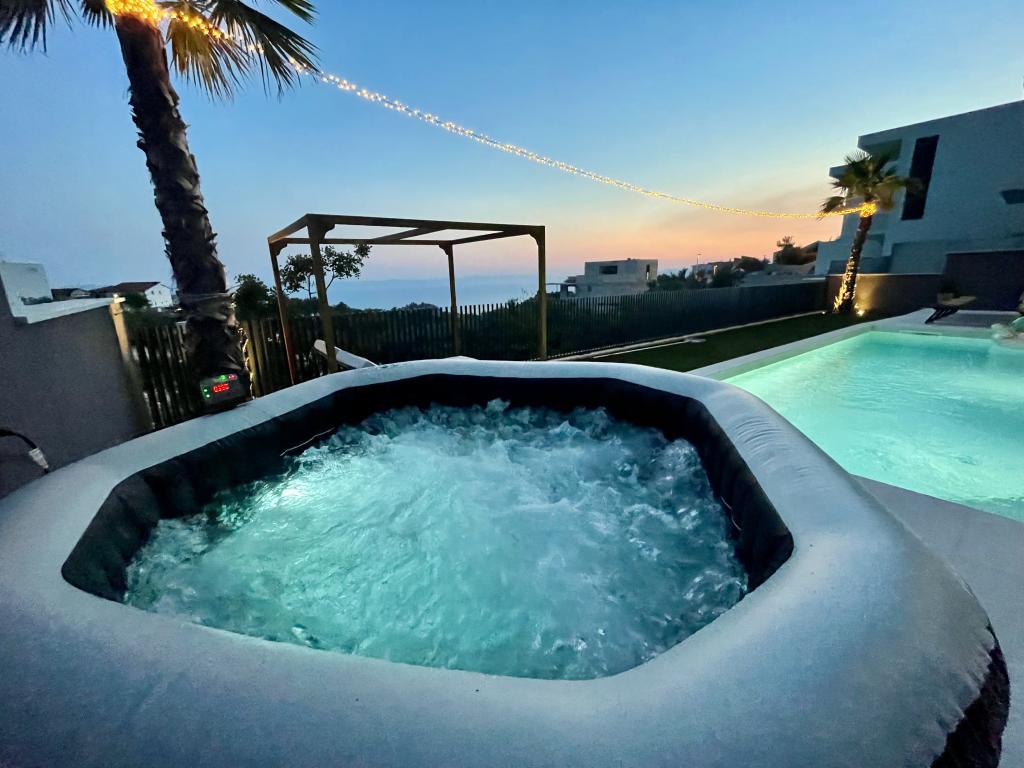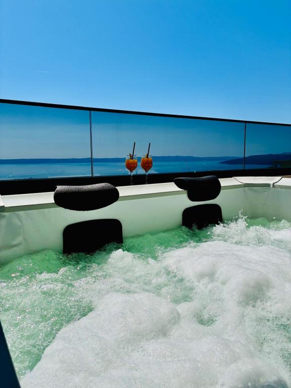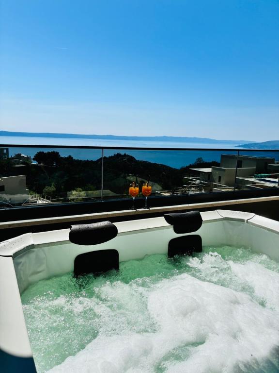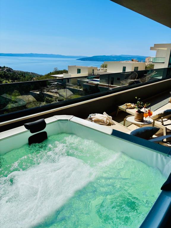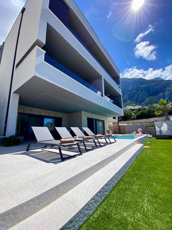 Villa 5 biedt accommodatie in Makarska met gratis WiFi en uitzicht op zee, evenals een buitenzwembad, een tuin en een gemeenschappelijke lounge. Dit appartement beschikt over gratis privéparkeergelegenheid en een gedeelde keuken. Het appartement met airconditioning bestaat uit 4 slaapkamers, een woonkamer, een volledig uitgeruste keuken met een koelkast en een koffiezetmachine, en 3 badkamers met een douche en gratis toiletartikelen. Handdoeken en bedlinnen zijn aanwezig. Villa 5 biedt 4-sterrenaccommodatie met een bubbelbad en een terras.