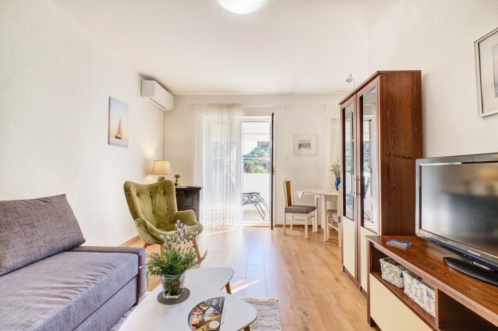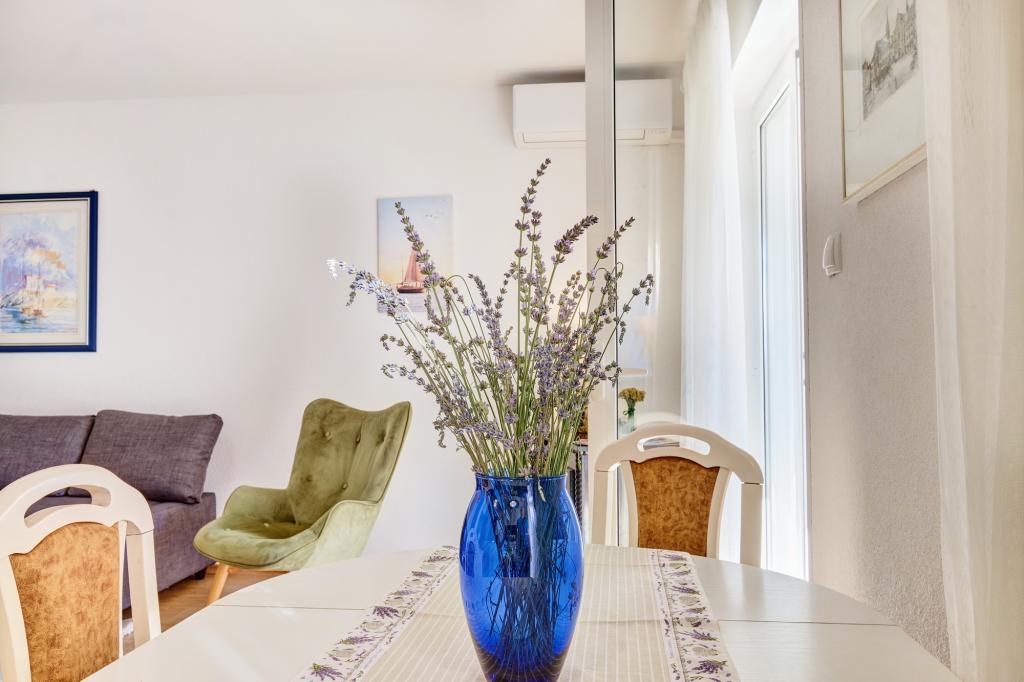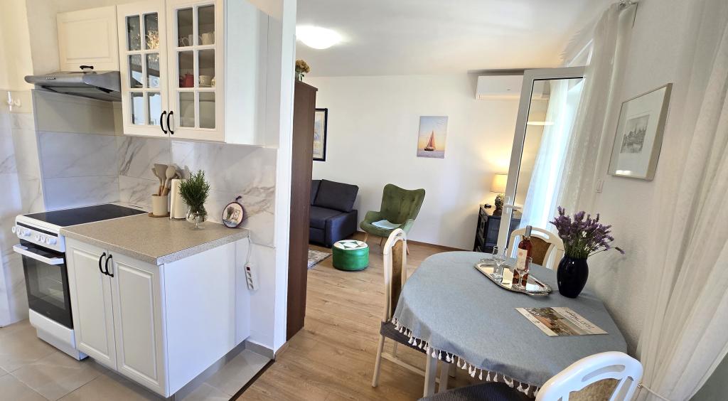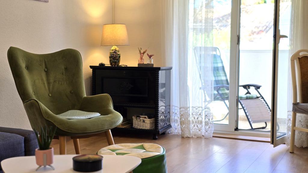 Appartement Blanka 1 is ideaal voor uw vakantie en biedt plaats aan 3 personen. Het beschikt over een slaapkamer met een tweepersoonsbed, een extra slaapkamer voor één persoon, een woonkamer, een eetkamer, een keuken en een badkamer. Een ruim terras met uitzicht op de tuin biedt extra ruimte voor ontspanning en gezelligheid. Extra voorzieningen zijn onder andere WiFi, airconditioning en een eigen parkeerplaats. Dit appartement is een praktische en comfortabele keuze voor uw verblijf.