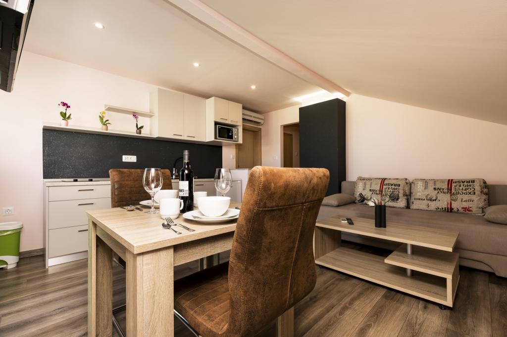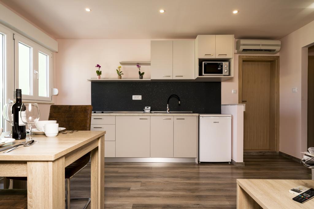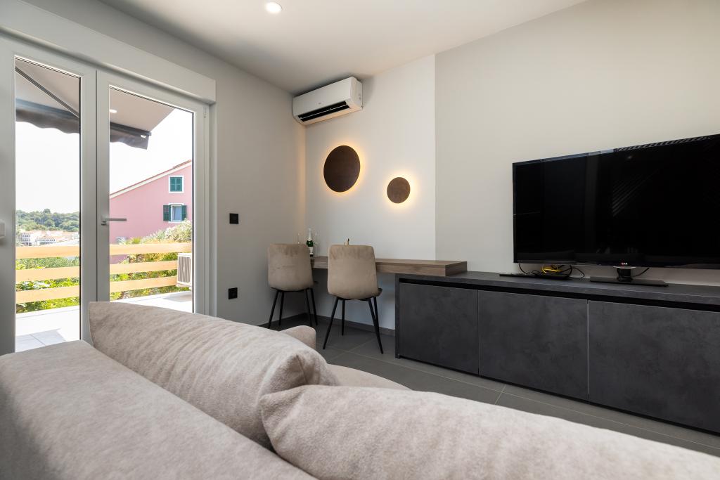 De gastheer Adı ontving ons zeer vriendelijk en zorgde goed voor ons. De kamer die we hadden was eenvoudig maar goed uitgerust met alles wat we nodig hadden. Netjes en schoon. De appartementen liggen direct aan de hoofdweg en zijn dus goed bereikbaar met de auto, er is geen ‘druk’ in de smalle straatjes en de parkeerplaats is ruim. Ondanks dat de appartementen dicht bij de weg liggen, is het toch rustig, alleen krekels zijn te horen. Het ontbijt op het prachtige terras is buitengewoon rijk en gevarieerd. Het centrale plein kan te voet worden bereikt via een reeks trappen. Het duurt 5-6 minuten om de Čikat-baai met zijn prachtig aangelegde strand te bereiken. Nogmaals hartelijk dank voor uw gastvrijheid. Wij hebben er echt van genoten.