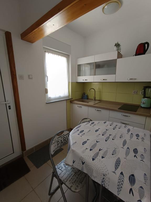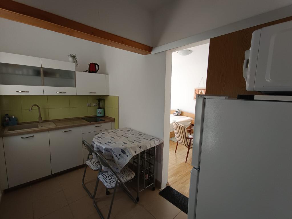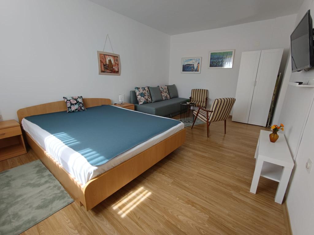 Studio-appartement voor maximaal 3 personen, bestaande uit een kamer met een tweepersoonsbed en een extra bed, een keuken, een badkamer en een terras. Parkeerplaats voor de auto bevindt zich op het erf van de woning. Het appartement is volledig gemeubileerd. Het duurt 5-8 minuten om naar het dichtstbijzijnde strand te lopen, en in de buurt zijn er winkels, een markt, een centrum, restaurants, een busstation... De stranden zijn voornamelijk kiezel- en betonstranden. Rustige locatie.