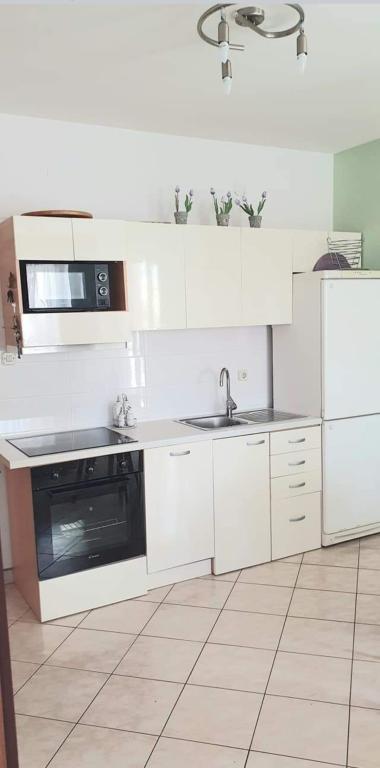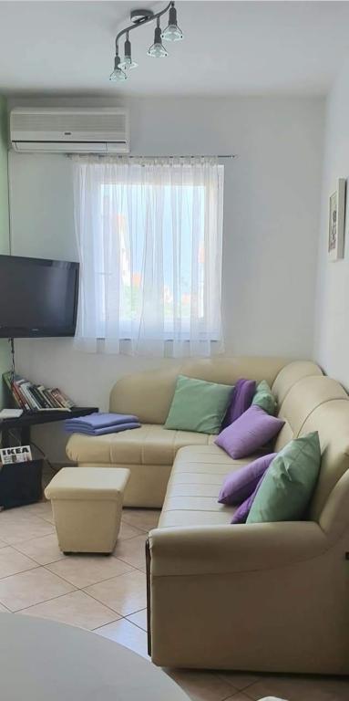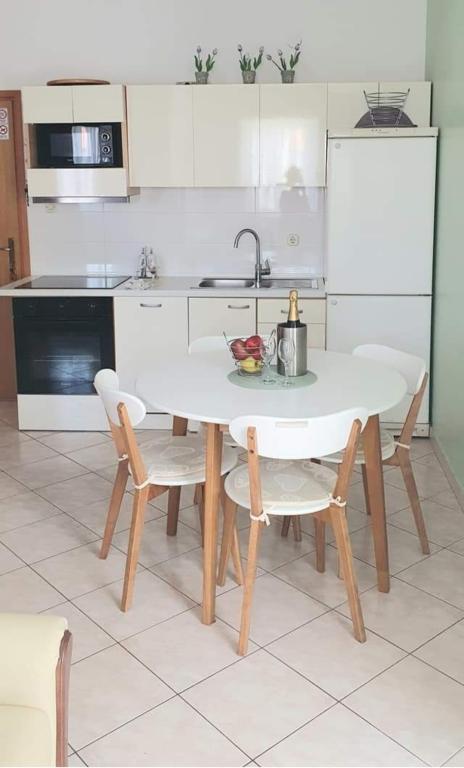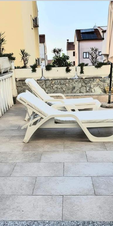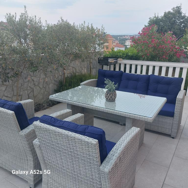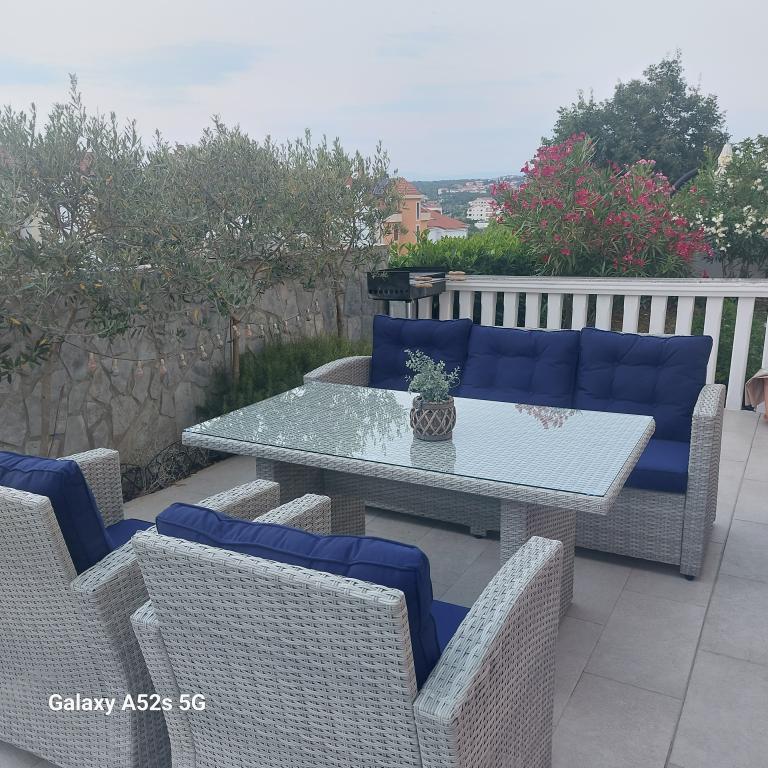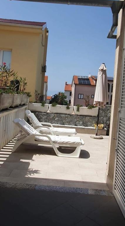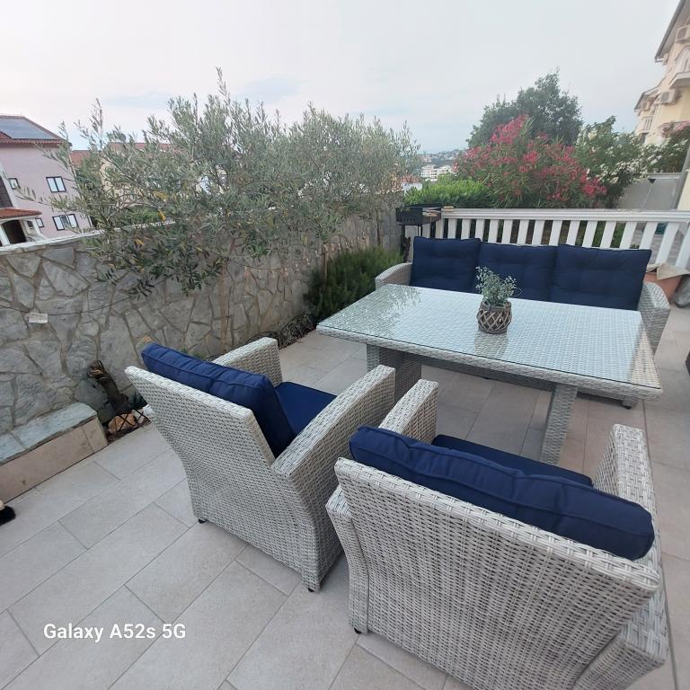 Het appartement is gelegen in het prachtige stadje Malinska op het eiland Krk. Het bevindt zich op de begane grond. Het bestaat uit een slaapkamer met een groot tweepersoonsbed (beddengoed inbegrepen, wordt om de 7 dagen verschoond) en een woonkamer met een slaapbank voor twee personen. De ruimte is open waardoor de eetkamer en woonkamer met elkaar verbonden zijn. Uitgerust met twee tv's: een in de woonkamer met een minilijn en de andere in de slaapkamer. Het appartement heeft een badkamer met douche (3 handdoeken per persoon), wasmachine, en keuken met magnetron, gasfornuis, koffiezetapparaat en grote koelkast met vriezer van 50 liter, en vaatwasser. Parkeren voor het appartement. Het meest waardevolle deel van het appartement is een groot terras (35m2) met comfortabele stoelen en ligstoelen waar u heerlijk kunt genieten van de middagrust. Als je het terras op gaat, ga je door een speciale hoek met een tafel en twee stoelen (loggia) als je koffie wilt drinken met een vrij uitzicht op het terras en een gedeeltelijk zeezicht, verborgen voor de zon.