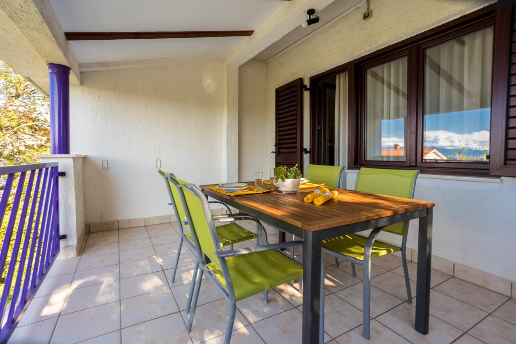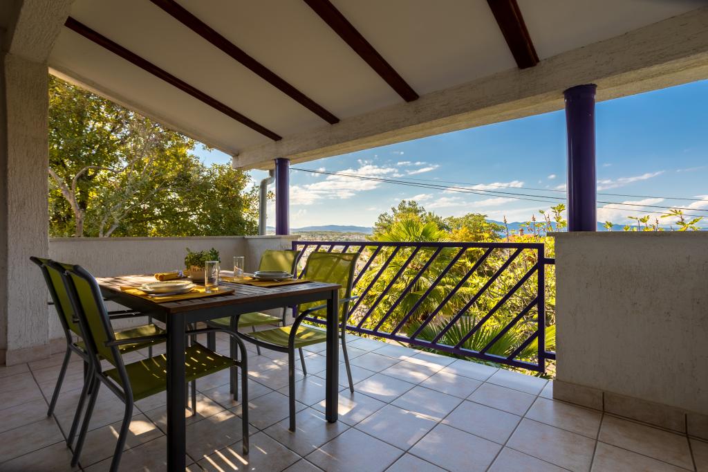 Appartement Val ligt op 250 meter van de prachtige baai van Rova en op 1500 meter van het centrum van Malinska. De nabijheid van het strand, restaurant, winkel en bakkerij maakt ons appartement een ideale keuze voor uw familievakantie. Het appartement bevindt zich op de eerste verdieping en beschikt over één slaapkamer met een tweepersoonsbed, een uitklapbare bank als bed voor één persoon, een ingerichte keuken, een terras met uitzicht op zee en één parkeerplaats.