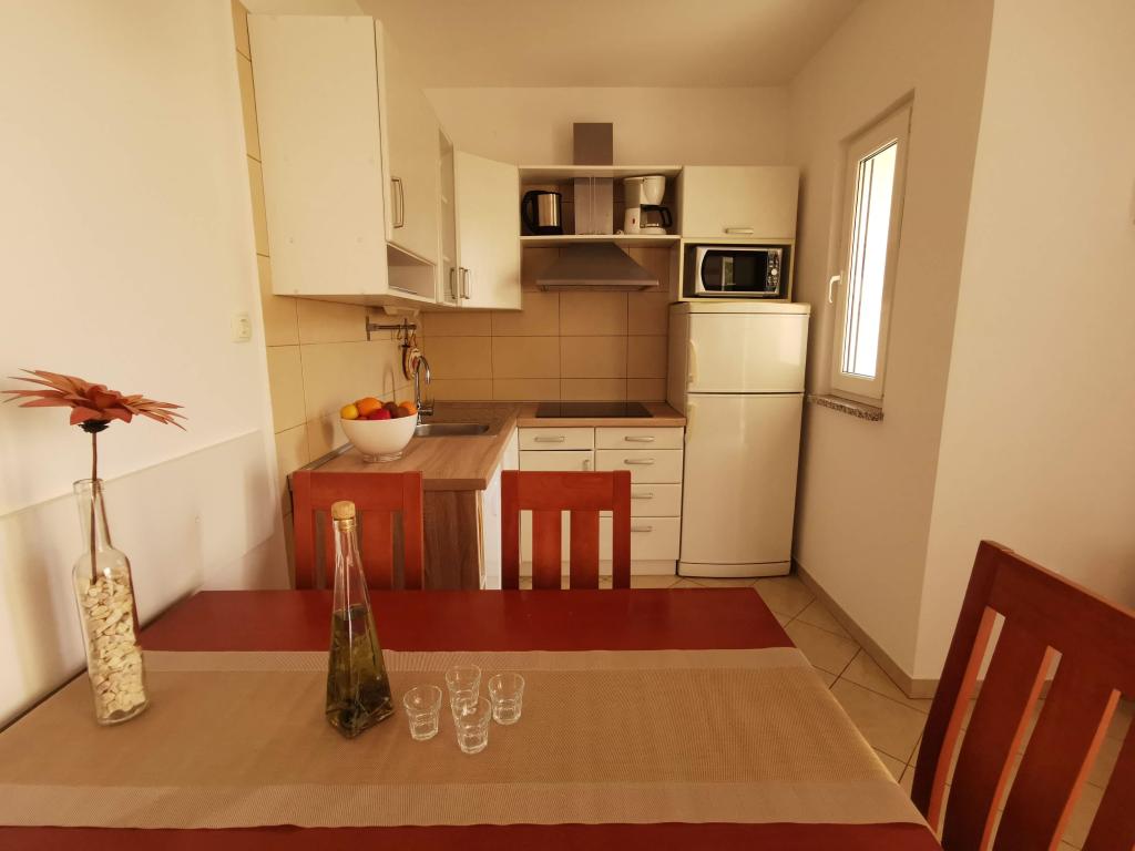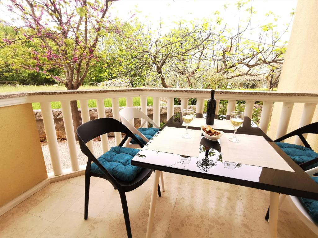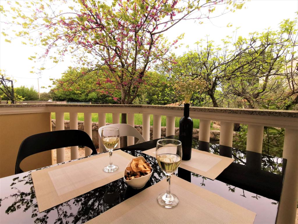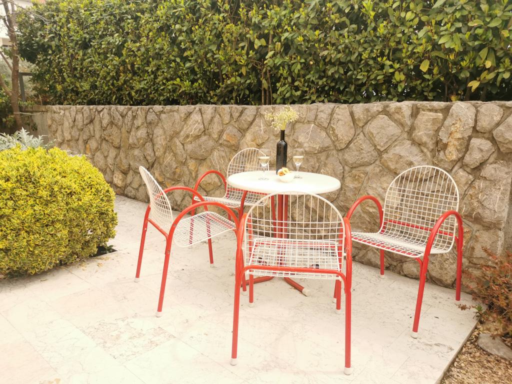 Twee volledig ingerichte appartementen met aparte ingang en beveiligde parkeerplaatsen in hun eigen afgesloten tuin en natuurlijke schaduw. Elk appartement is voorzien van airconditioning en heeft een terras. Beide hebben WiFi, satellietprogramma's, magnetron, koelkast met vriesvak, broodrooster, filterkoffiezetapparaat, waterkoker, haardroger, met beddengoed en handdoeken. Alle slaapkamers zijn voorzien van horren voor de ramen. Het is 10 minuten lopen naar het dichtstbijzijnde strand en 40 minuten lopen naar het centrum van Malinska. De appartementen maken deel uit van een gezinswoning in een rustig deel van Malinska en zijn omgeven door groen.