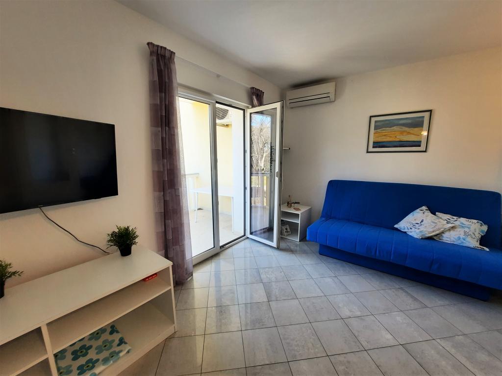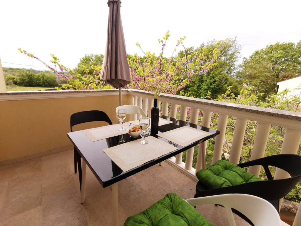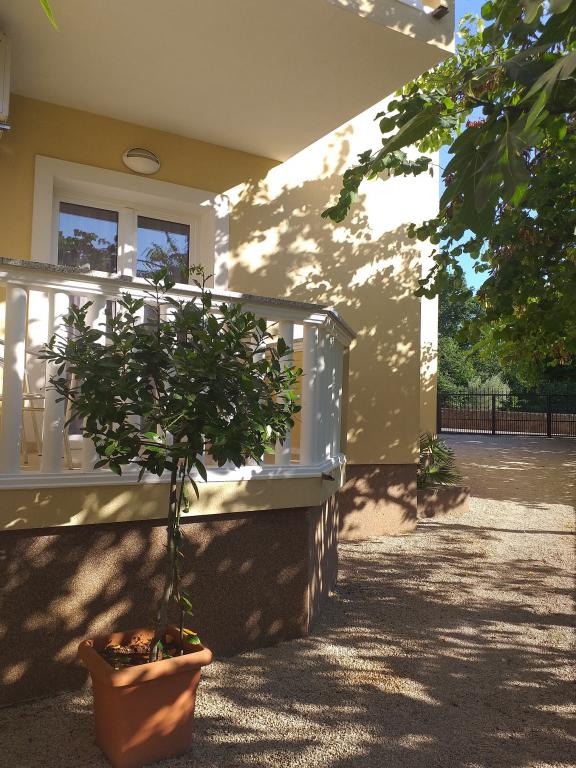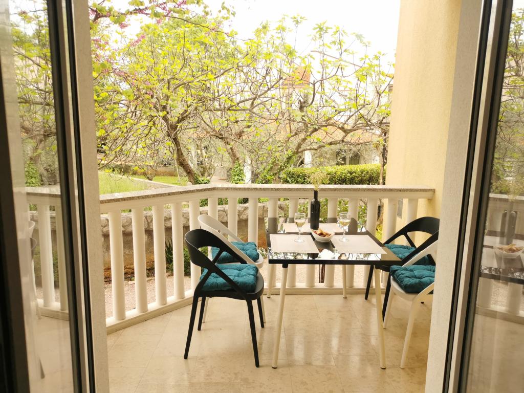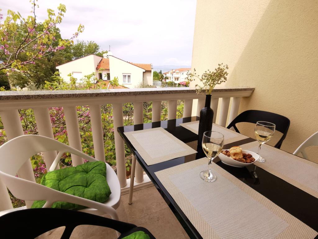 Twee volledig ingerichte appartementen met aparte ingang en beveiligde parkeerplaatsen in hun eigen afgesloten tuin en natuurlijke schaduw. Elk appartement is voorzien van airconditioning en heeft een terras. Beide hebben WiFi, satellietprogramma's, magnetron, koelkast met vriesvak, broodrooster, filterkoffiezetapparaat, waterkoker, haardroger, met beddengoed en handdoeken. Alle slaapkamers zijn voorzien van horren voor de ramen. Het is 10 minuten lopen naar het dichtstbijzijnde strand en 40 minuten lopen naar het centrum van Malinska. De appartementen maken deel uit van een gezinswoning in een rustig deel van Malinska en zijn omgeven door groen.