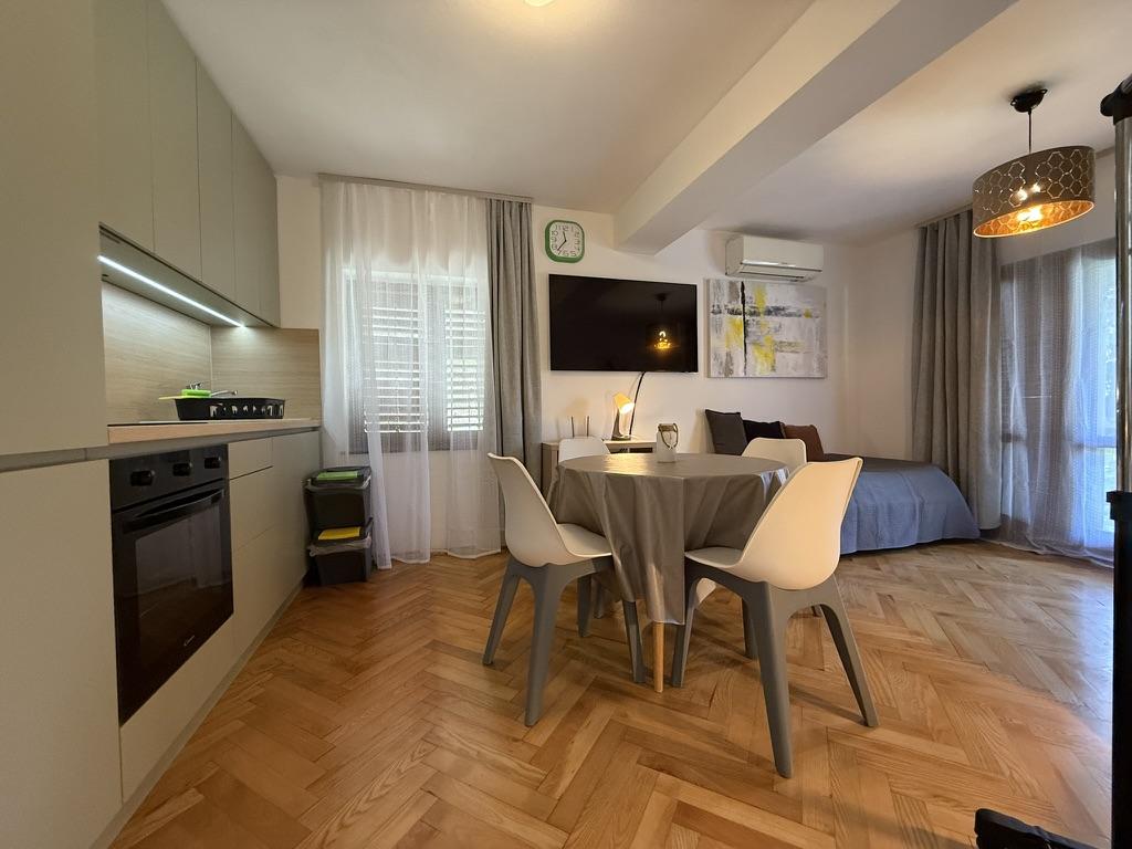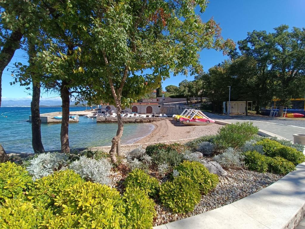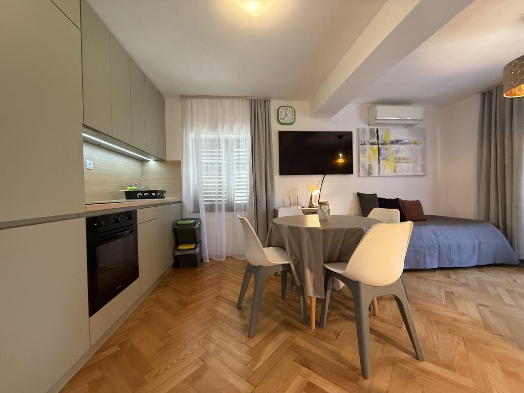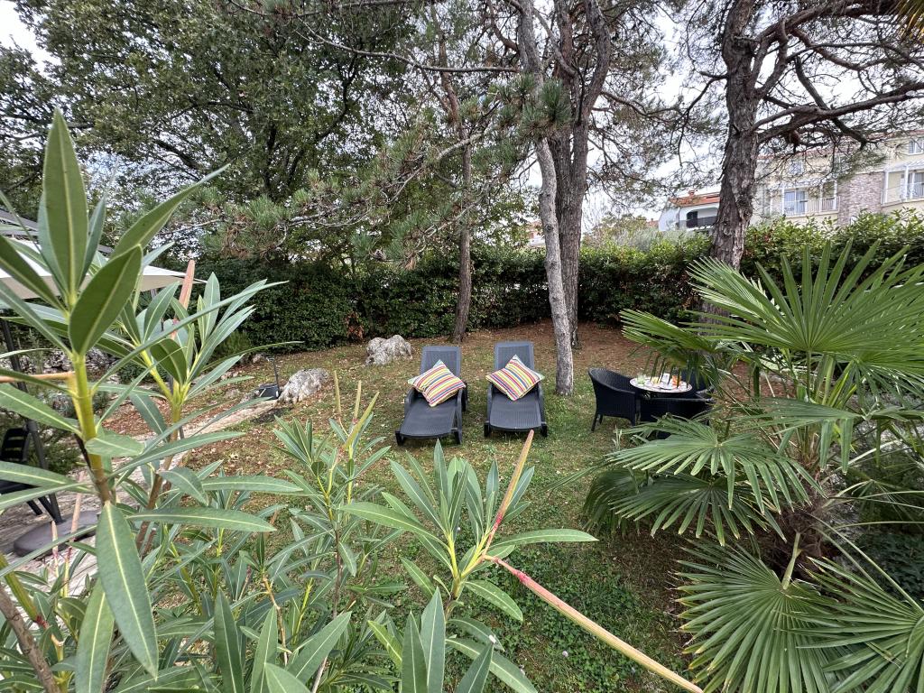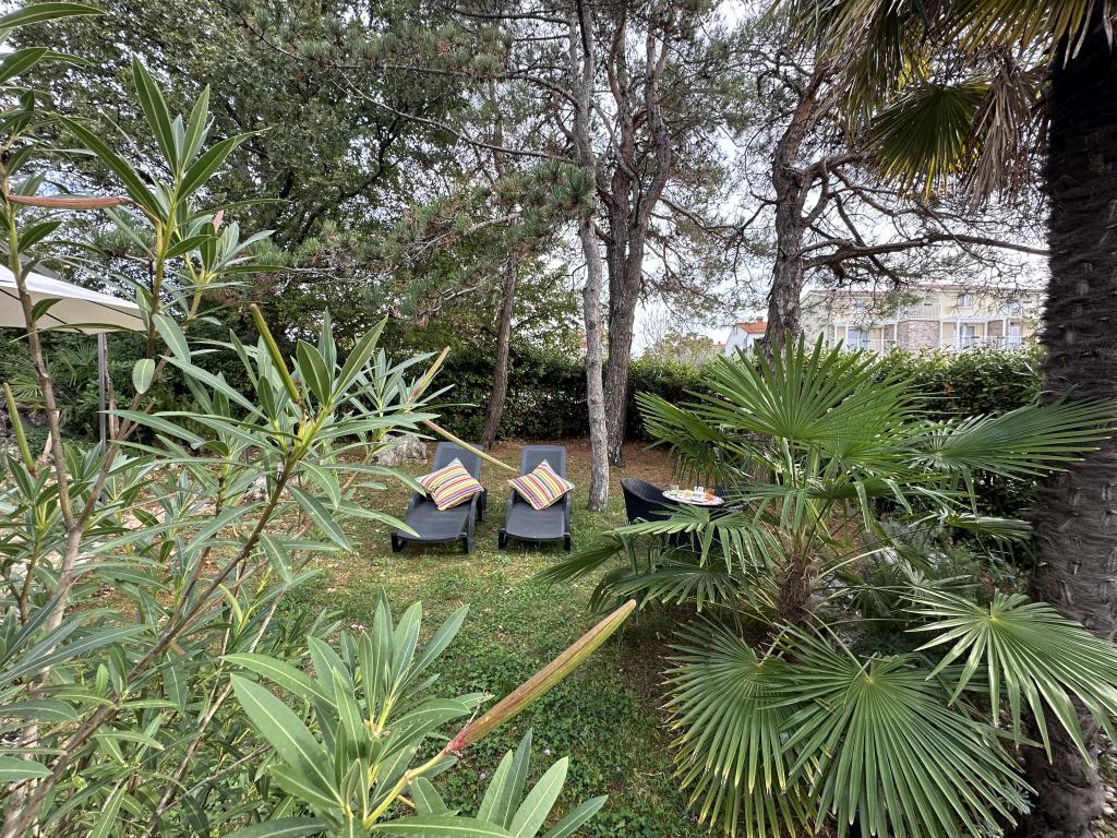 Appartementen 50m2 met terrassen en tuin 200m2, zijn gelegen in een rustige omgeving op 100 meter van de zee en het strand van de Rova-baai. Er is een aparte privé en veilige parkeerplaats in de schaduw. In de directe omgeving is er een kinderpark, watersporten, een buitengymnastiek en vele restaurants en strandbars, promenades langs de zee en fietspaden. In de ruime tuin vol mediterraan groen is het aangenaam vertoeven de hele dag in de schaduw.