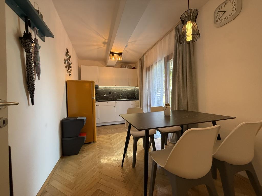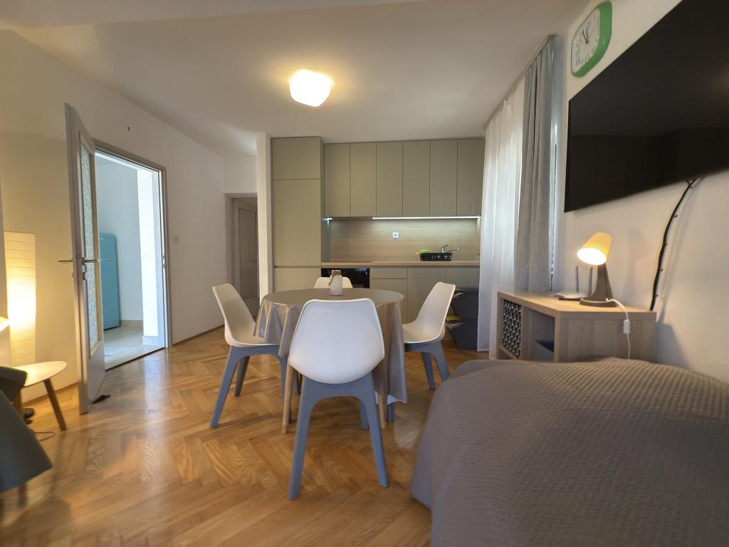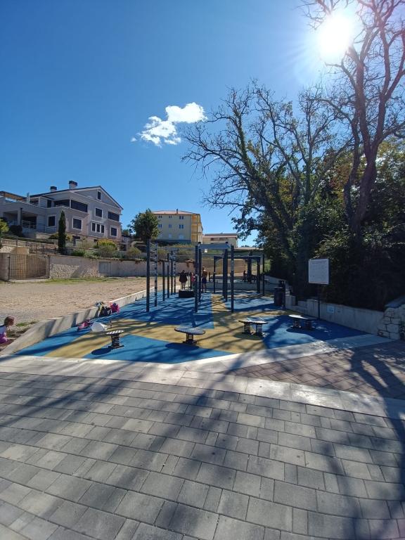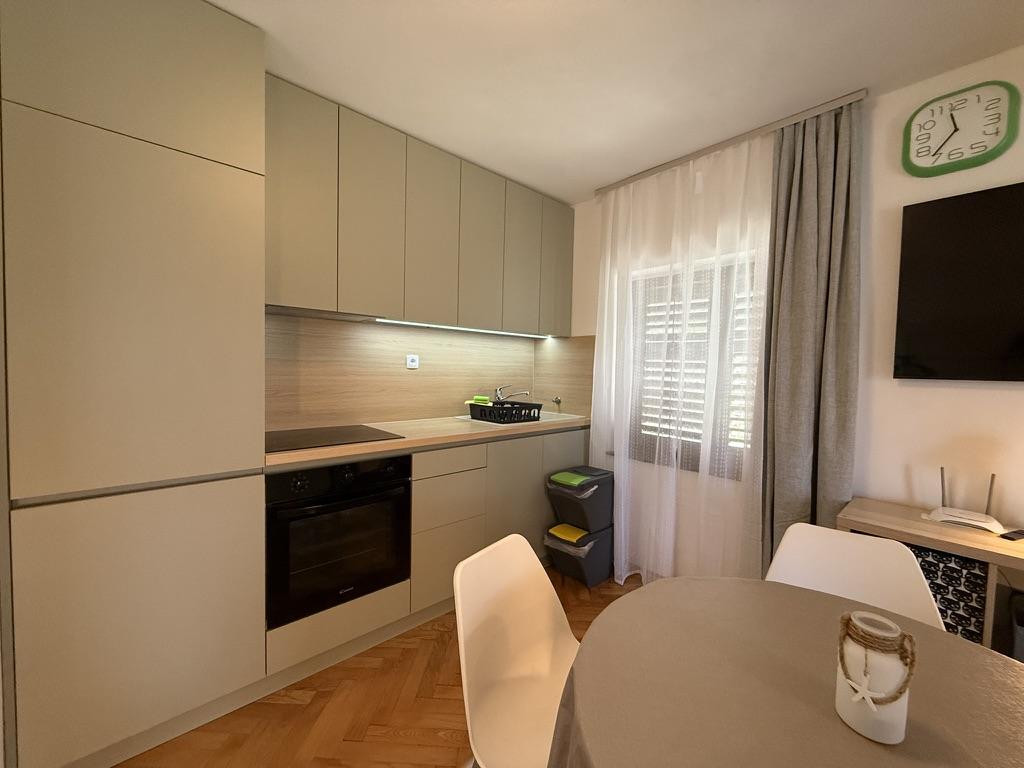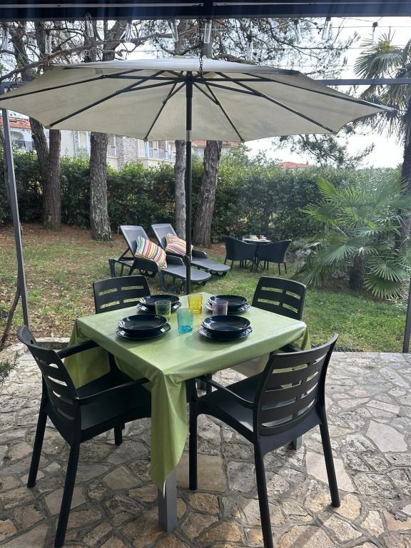 Appartementen 50m2 met terrassen en tuin 200m2, zijn gelegen in een rustige omgeving op 100 meter van de zee en het strand van de Rova-baai. Er is een aparte privé en veilige parkeerplaats in de schaduw. In de directe omgeving is er een kinderpark, watersporten, een buitengymnastiek en vele restaurants en strandbars, promenades langs de zee en fietspaden. In de ruime tuin vol mediterraan groen is het aangenaam vertoeven de hele dag in de schaduw.