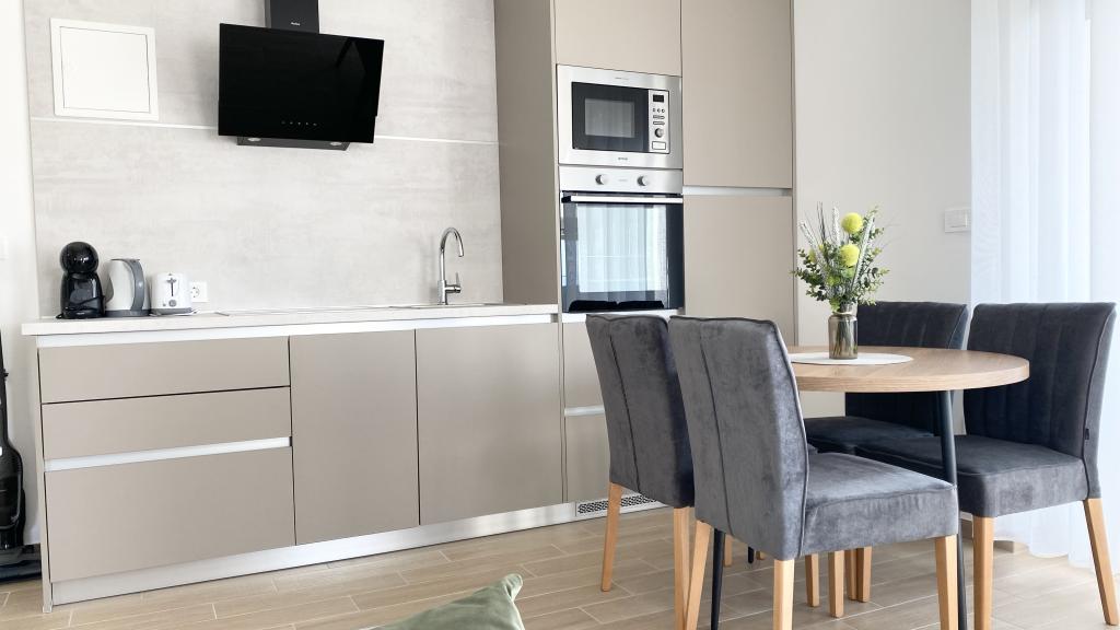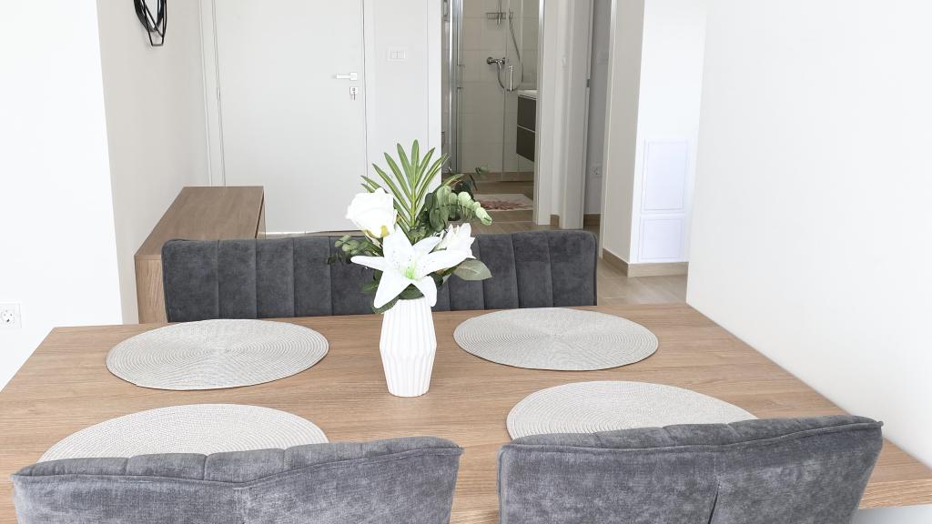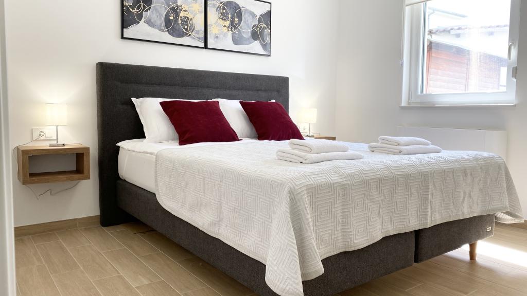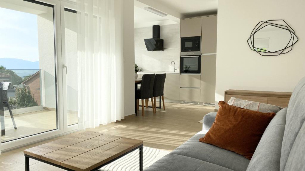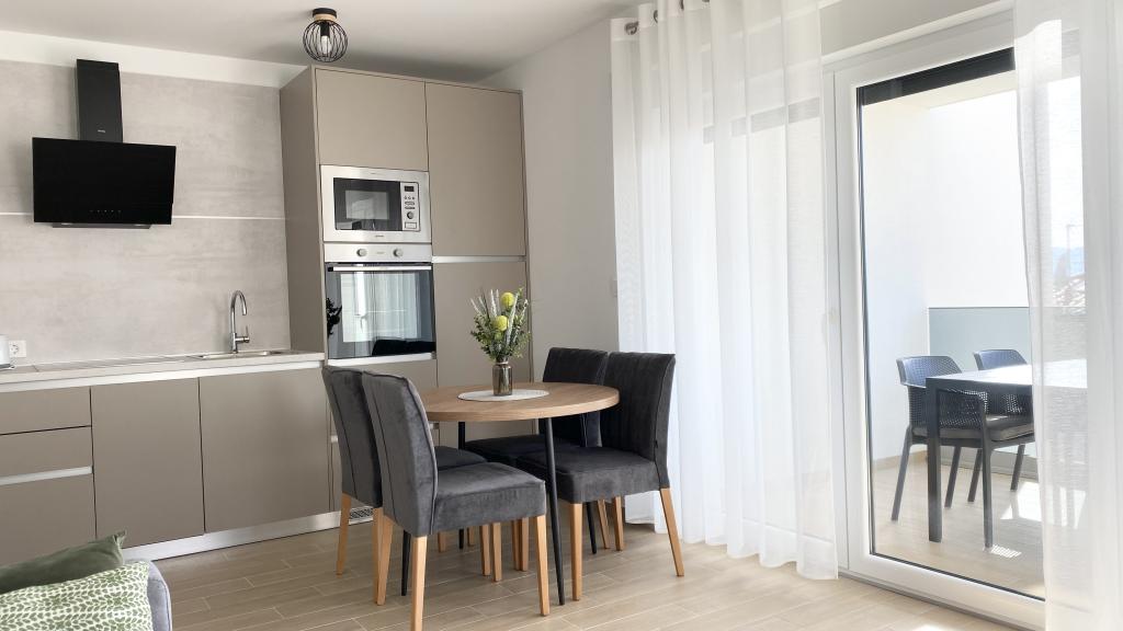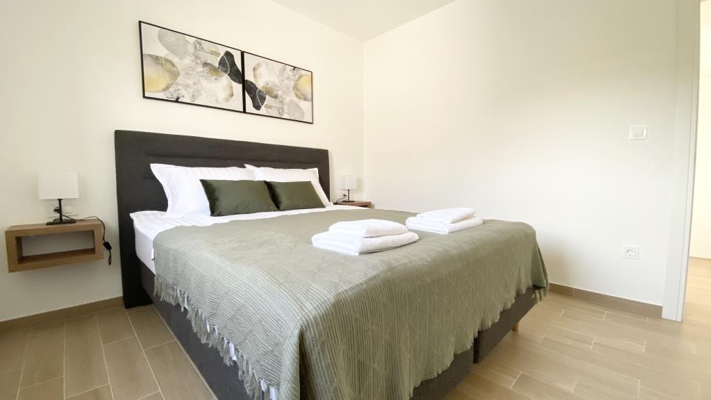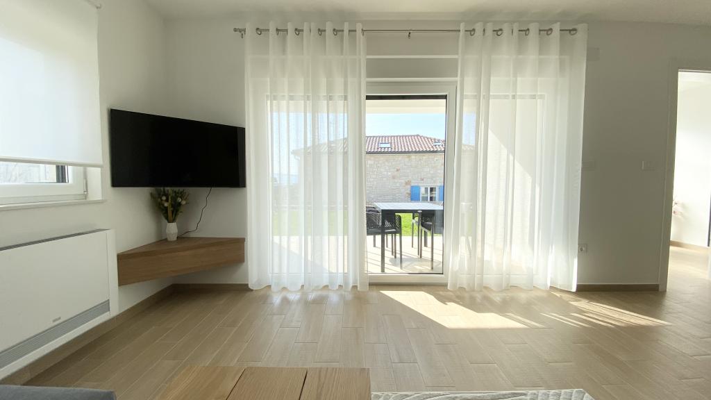 Villa Malina is een nieuw appartementencomplex gelegen in een rustig deel van het dorp. Het beschikt over drie modern ingerichte appartementen van 50, 55 en 60 m² met aparte ingangen en beveiligde parkeerplaatsen op het erf. Elk appartement heeft een woonkamer, slaapkamer, badkamer, keuken en een overdekt terras. In de woonkamer staat een slaapbank die als extra bed voor twee personen kan dienen. De keuken is uitgerust met serviesgoed, keukendoeken, oven, magnetron, koelkast met vriezer, waterkoker, elektrische kookplaat, broodrooster en vaatwasser. Verder zijn er internet, airconditioning in elke kamer, een stofzuiger, een wasmachine, een föhn en horren voor alle ramen. Een babybedje is op aanvraag beschikbaar. Gasten hebben toegang tot een gedeeld terras met barbecue en een buitendouche. Bij een verblijf van 10 dagen of langer is er 10% korting beschikbaar.